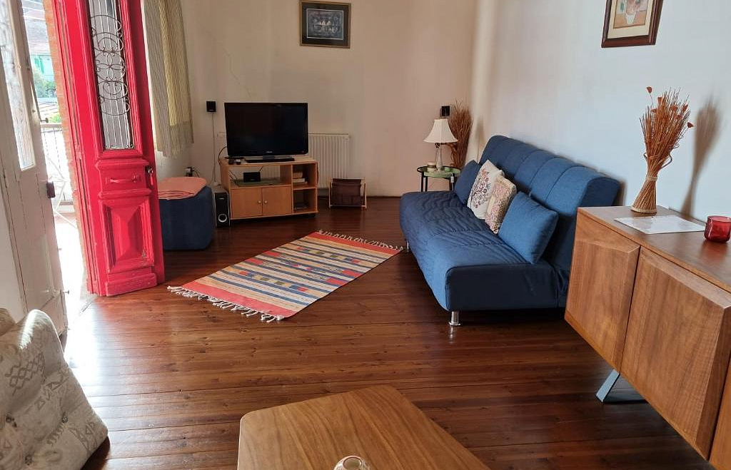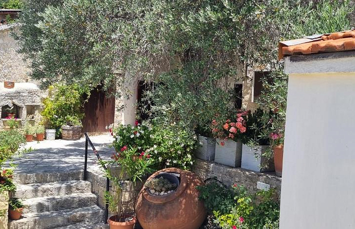 Третья квартира расположена на втором этаже, доступна по традиционной каменной внешней лестнице, и состоит из просторной гостиной, отдельной кухни (3.5 × 4 м), санузла с душем, спальни (4 × 5 м), а также крытого балкона площадью 10 м² с панорамным видом на деревню и окрестности.