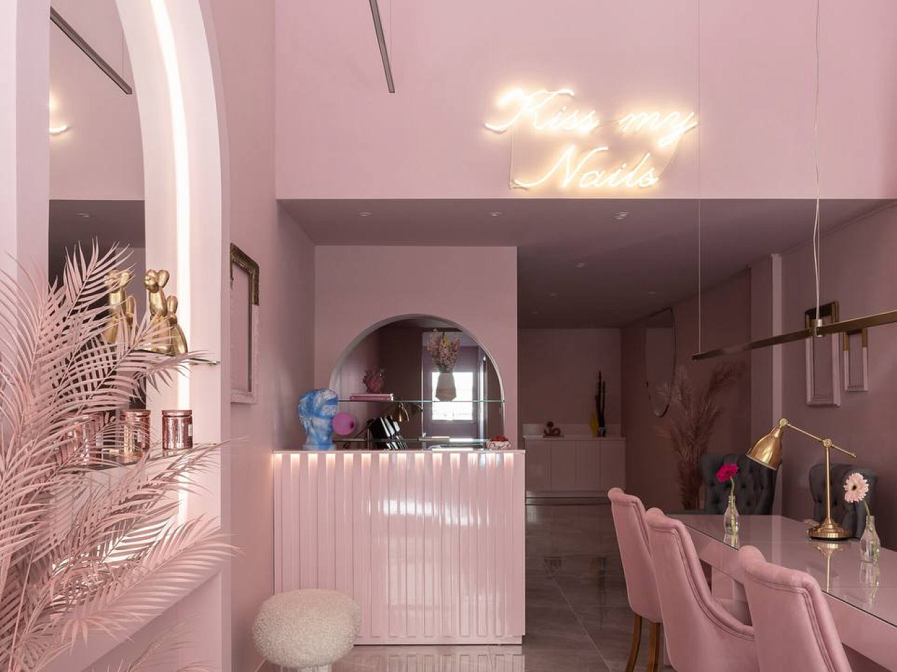 5 рабочих мест для маникюра, 4 кушетки (2 для ресниц, 1 для педикюра, 1 универсальное место для работы в четыре руки / педикюра), Место бровиста / визажиста