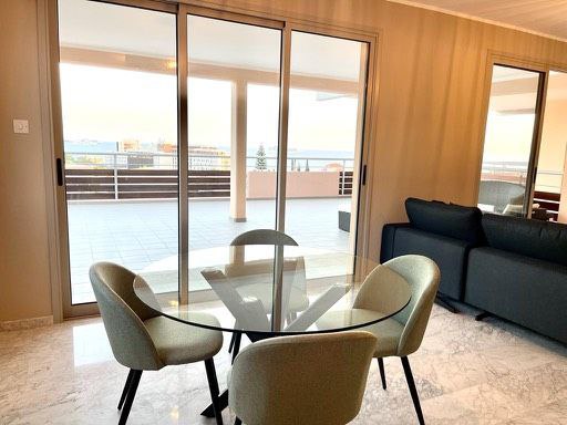 Сдается квартира с двумя ванными комнатами и террасами в районе Agios Tychonas. Третий этаж с видом на море. Квартира полностью меблирована. Парковочное место.