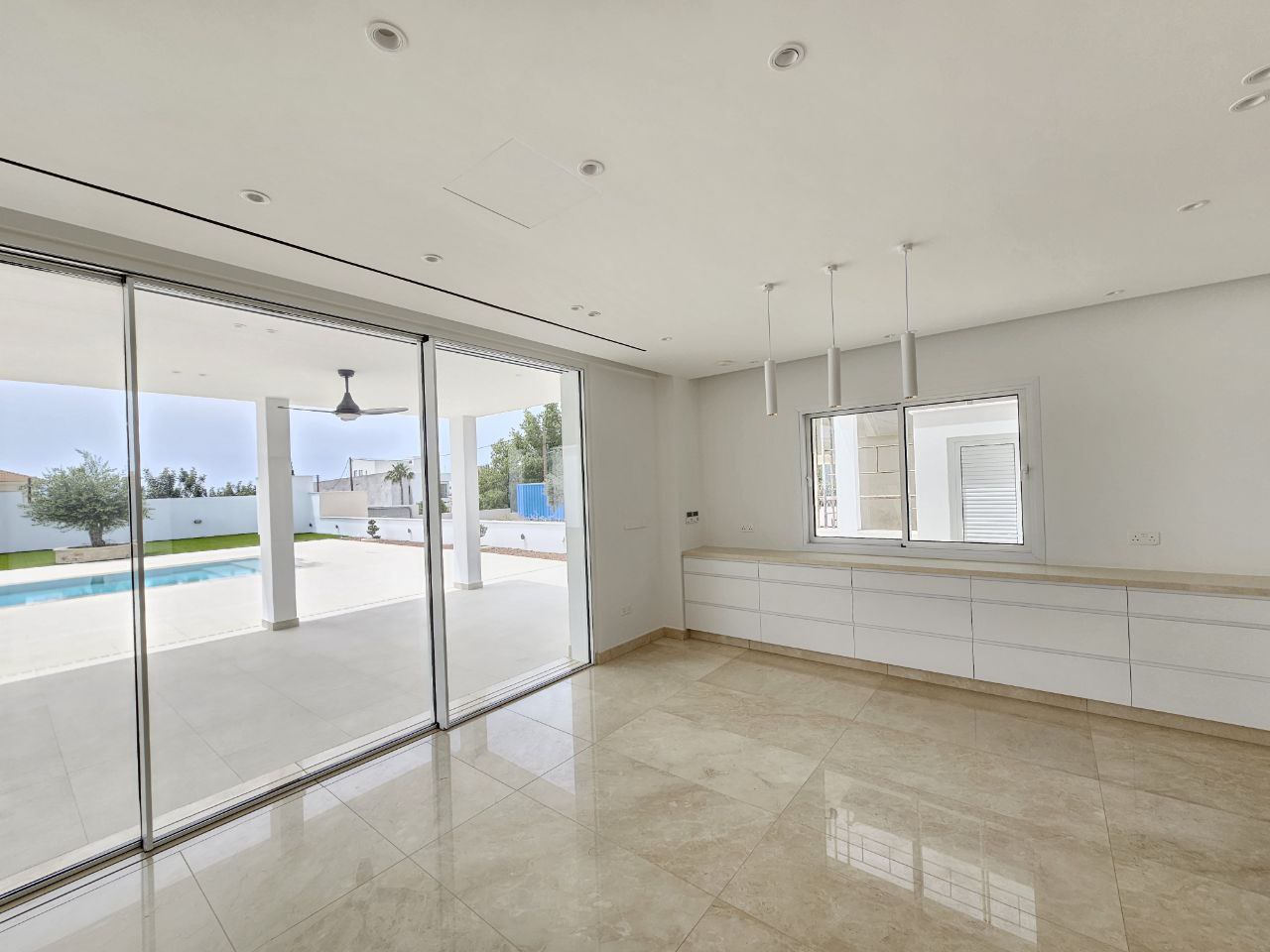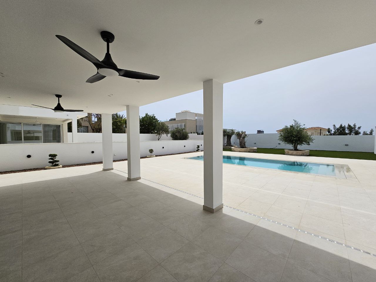 Сдаётся в аренду новая четырёхуровневая вилла с бассейном в районе Mouttagiaka города Limassol. В доме установлены система подогрева полов и фотовольтайк. На первом уровне находятся гостиная с камином и выходом к бассейну, кухня открытой планировки, гостевой туалет и душевая. На втором этаже расположены три спальни, каждая со своим санузлом и душем, гардеробная, ванная комната, небольшая кухня с холодильником и веранда. Третий этаж занимает спальня с собственной кухней, ванной комнатой и верандой. На последнем уровне — просторное помещение, подходящее для спортзала, гостевой туалет и ещё одна спальня с отдельным входом, душевой и санузлом. С территории виллы открывается панорамный вид на море, поблизости нет строительных работ. Вилла сдается без мебели, меблировка возможна по запросу арендатора.