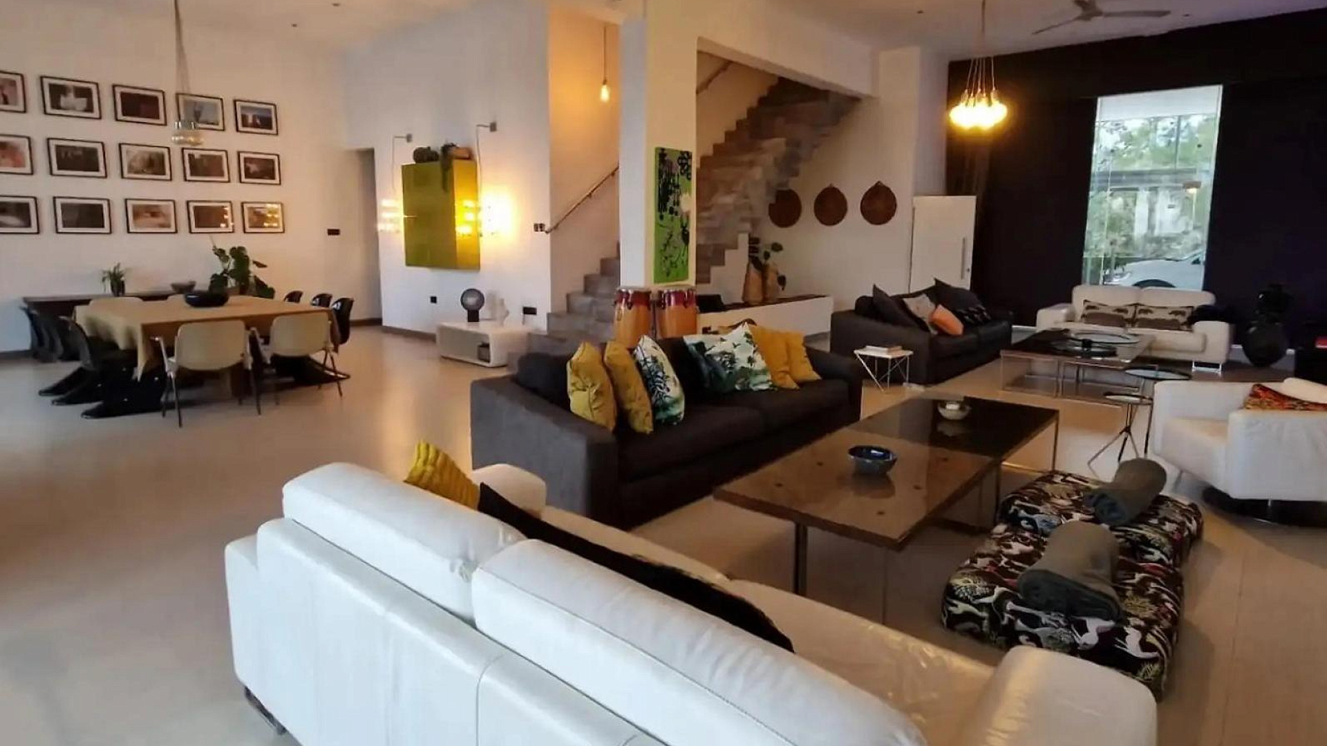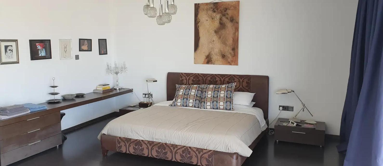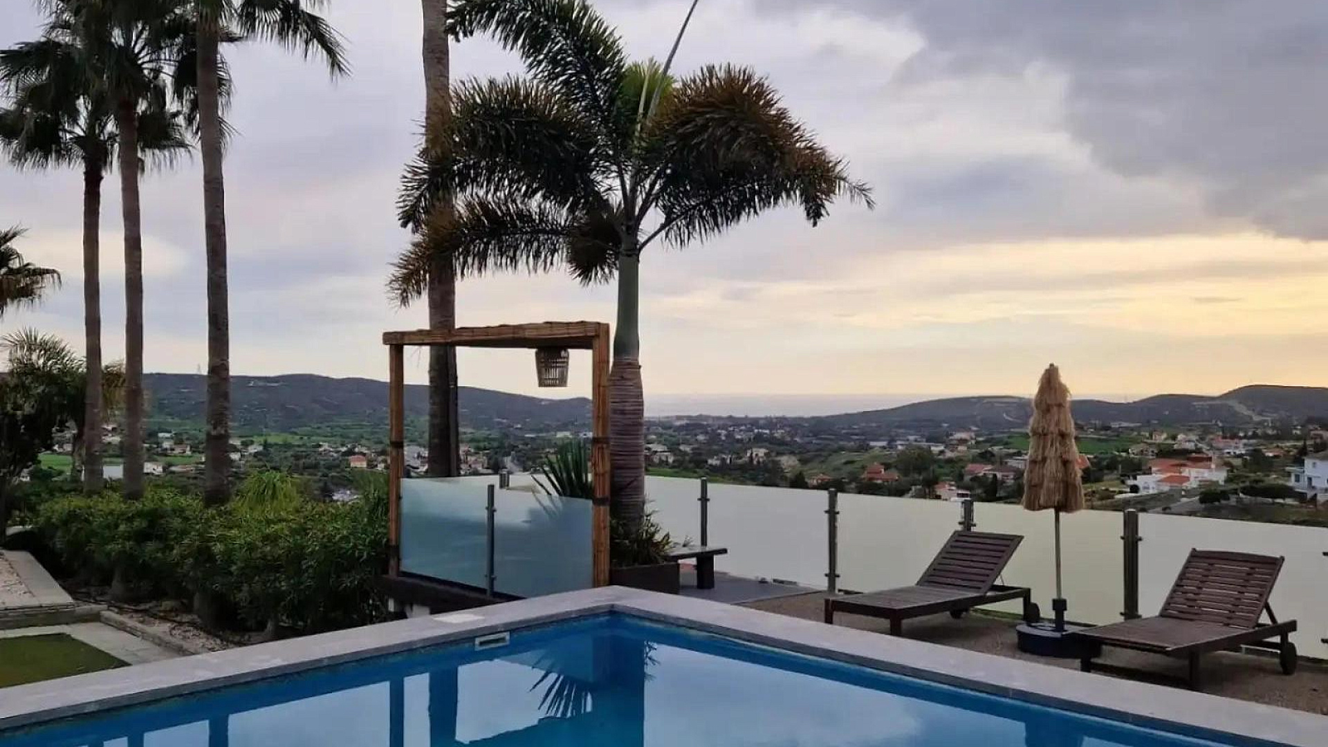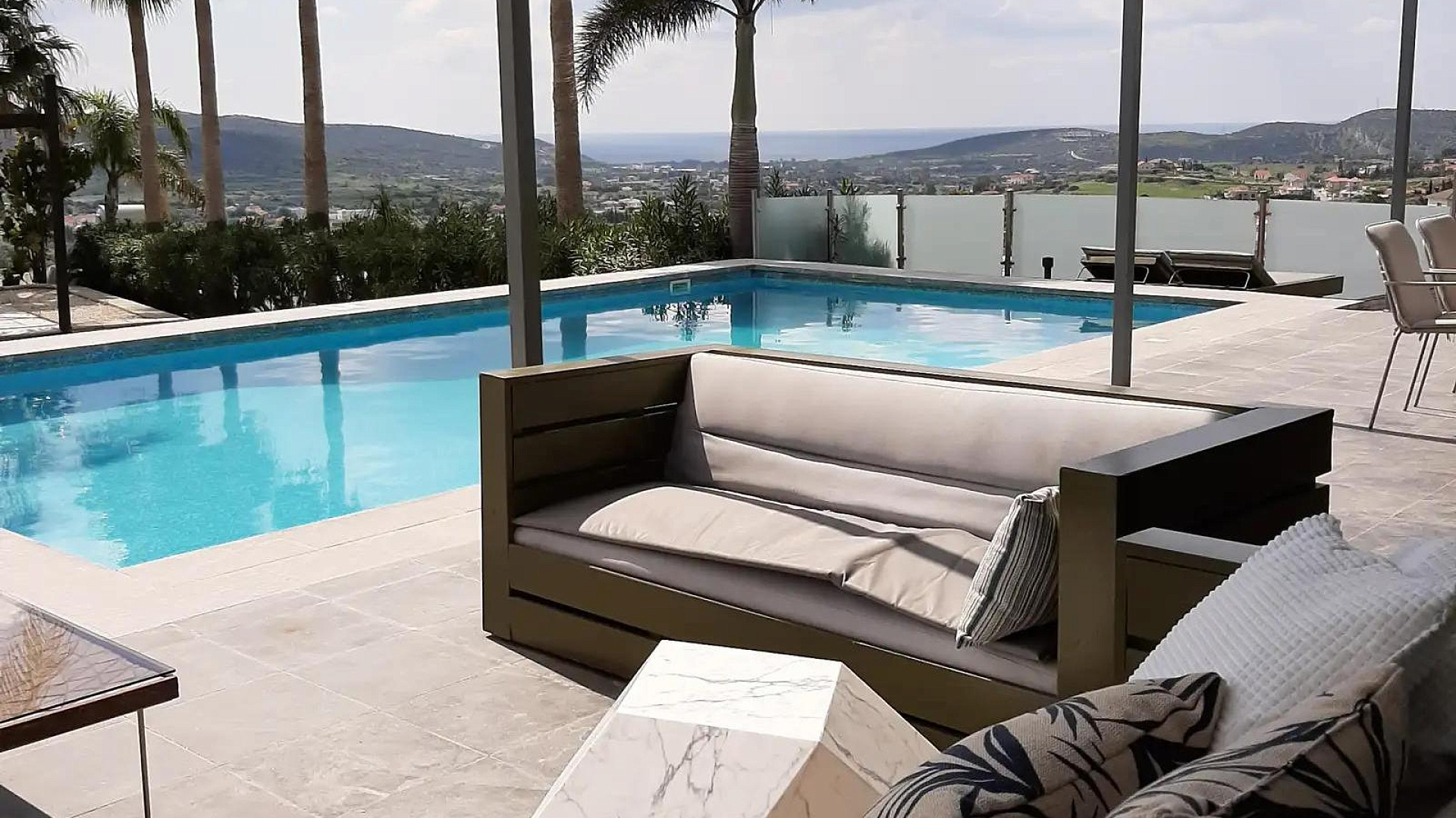 Сдается в аренду трехуровневая вилла на небольшом холме с видом на море и деревню в районе Monagroulli, Limassol недалеко от пляжа St Raphael Beach с легким доступом к шоссе. Вилла полностью меблирована и оборудована бытовой техникой. Установлены кондиционеры во всех спальнях и гостиной, встроенный смягчитель воды и система фильтрации, система подачи воды под давлением для принятия душа, пол с подогревом, гидромассажная ванна, наружные колонки Bluetooth, многочисленное освещение внутри и снаружи для создания атмосферы, палуба для загара, глиняная печь на открытом воздухе, бар на открытом воздухе и душ у бассейна, газовое барбекю, электрические ворота, фотоэлектрические панели. В комнатах стильный декор и произведения искусства. Для уютных вечеров есть 2-метровый камин с танцующим пламенем. В гостиной и обеденной зоне есть большие окна от пола до потолка и двери, чтобы насладиться удивительным видом на сад и бассейн. Обеденная зона рассчитана на десять человек. Имеется дополнительная столовая на террасе у бассейна для обедов на свежем воздухе. Вход в дом находится со стороны гостиной и крытой парковки на 2 машины. На нижнем уровне расположены тренажерный зал и игровая комната с бильярдным столом. На участке расположен бассейн 10 X 5 м. Эта уютная вилла - редкая находка, предлагающая современную стильную жизнь и роскошь пространства. В стоимость аренду включен уход за бассейном и садом два раза в неделю, уборка один раз в неделю, оптоволоконный интернет, канализация, мусор и вода. Вилла может быть использована в качестве офиса.