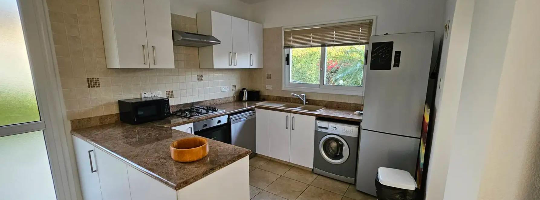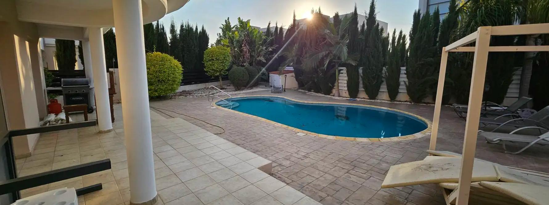 Сдаётся в аренду дом с 3 спальнями и бассейном в Pafos, Pegeia. Дом включает просторную гостиную, современную кухню, 3 спальни, 3 ванные комнату и большую террасу с местом для барбекю. Дом полностью меблирован, оснащён бытовой техникой и кондиционерами. Так же есть кладовая, парковка. Расположен всего в 700 метрах от моря и в непосредственной близости к городской инфраструктуре. Животные разрешены.