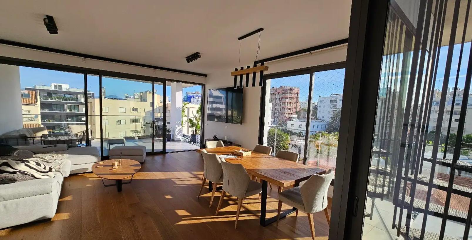 Сдается стильный 3-спальный пентхаус в районе Strovolos - Acropolis, в городе Nicosia.Квартира площадью 127 м² включает три спальни, три ванные комнаты и дополнительную многофункциональную комнату. Она оснащена подогревом пола, фотоэлектрическими панелями и энергоэффективными кондиционерами в каждой комнате. Большой балкон с панорамным видом и частный сад на крыше площадью 75 м².Пентхаус полностью меблирован и оборудован техникой: два холодильника, морозильная камера, посудомоечная машина, смарт ТВ 85'', стиральная машина с сушилкой, фильтр для воды с обратным осмосом и электрические жалюзи. В интерьере – кровать "king-size", обеденный стол на 6 человек, диван, кофейный столик, домашний офисный стол и тропические растения в горшках.Расположение в 5 минутах от проспекта Makariou рядом с KPMG,American International School, и Starbucks. Пентхаус сдается с 1 марта, домашние животные не допускаются.