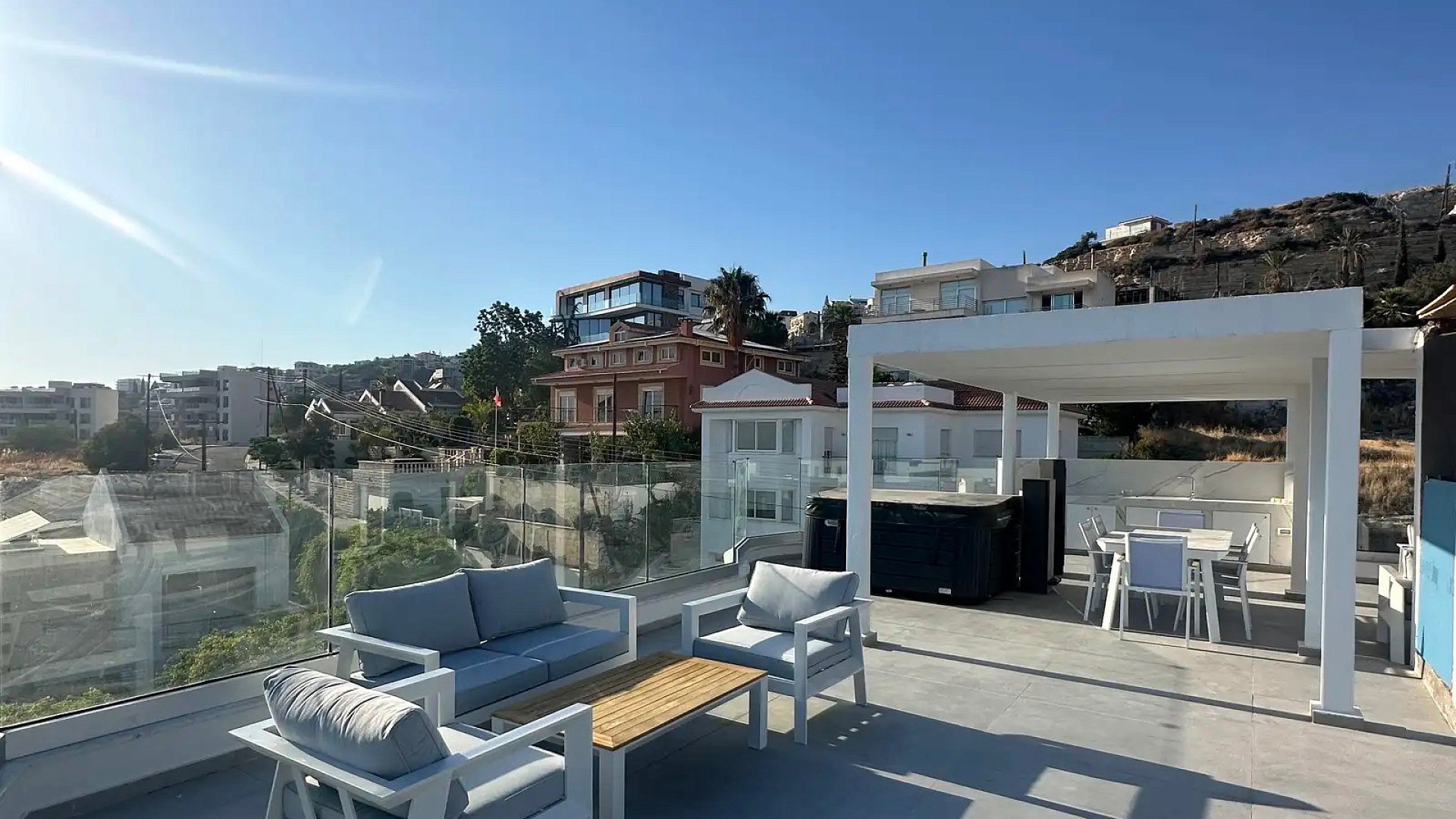 В аренду вилла в районе Аgia Fyla, предлагающая высочайший уровень комфорта и эксклюзивного стиля. Вилла включает 5 просторных спален и 5 современных ванных комнат, распределенные по 4 этажам, общей площадью 350 м2. На первом этаже расположен уютный сад площадью 35 м2, на крыше площадью 116 м2 находятся зоны для барбекю, джакузи и сауна, создающие идеальные условия для отдыха и развлечений. Элегантный и функциональный дизайн включает лифт, обеспечивающий удобство передвижения между этажами.