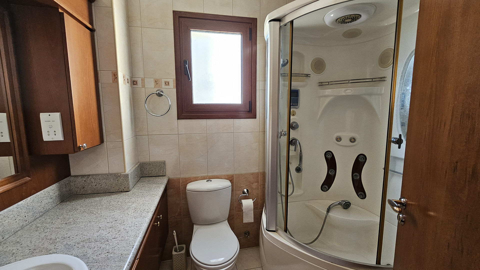 Недвижимость располагает двумя крытыми парковочными местами и подключением к быстрому интернету CYTA broadband. Резиденция находится в центре Пафоса, в районе Apostolou Pavlou, рядом с супермаркетами Natiotis и Sklavenitis, а также другими удобствами.