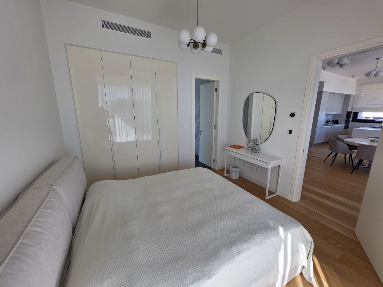 Сдается новый трехспальный пентхаус 121 м² в районе Potamos Germasogeias, Limassol. Апартаменты расположены на 4 этаже и включают 3 спальни, 3 санузла, кухню открытой планировки, просторную гостиную и крытую веранду площадью 27,1 м². Пентхаус оборудован системой водяного теплого пола и VRV-кондиционированием, отделан высококлассными материалами: паркетные полы, входные двери повышенной безопасности, алюминиевые термопрофили, встроенная мебель и сантехника премиум-класса. Недвижимость расположена в закрытом охраняемом комплексе с ландшафтным садом, всего в 500 метрах от моря и всей инфраструктуры туристической зоны.