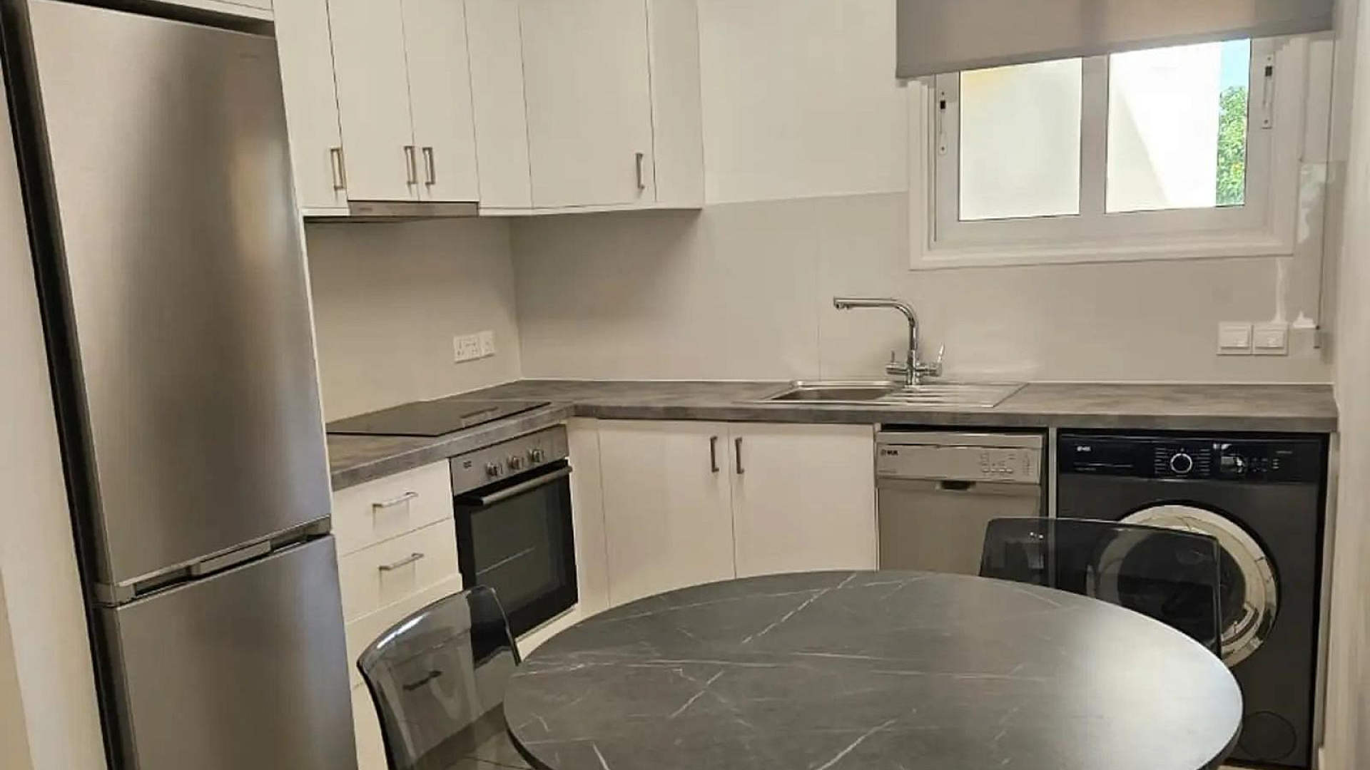Сдается в аренду двухспальная квартира площадью 80 м² на первом этаже в районе Agios Spyridon, Limassol. Апартаменты включают 2 спальни, 1 ванную комнату, кухню, гостиную и просторную частично крытую веранду с выходом в сад. Недвижимость полностью меблирована и оснащена кондиционерами во всех комнатах. Квартира расположена в тихом жилом районе с удобным доступом к трассе, набережной, My Mall и City of Dreams Casino. В стоимость аренды входит одно открытое парковочное место, также есть возможность припарковаться на улице. Животные в квартире не допускаются. Постройка 2006 года.