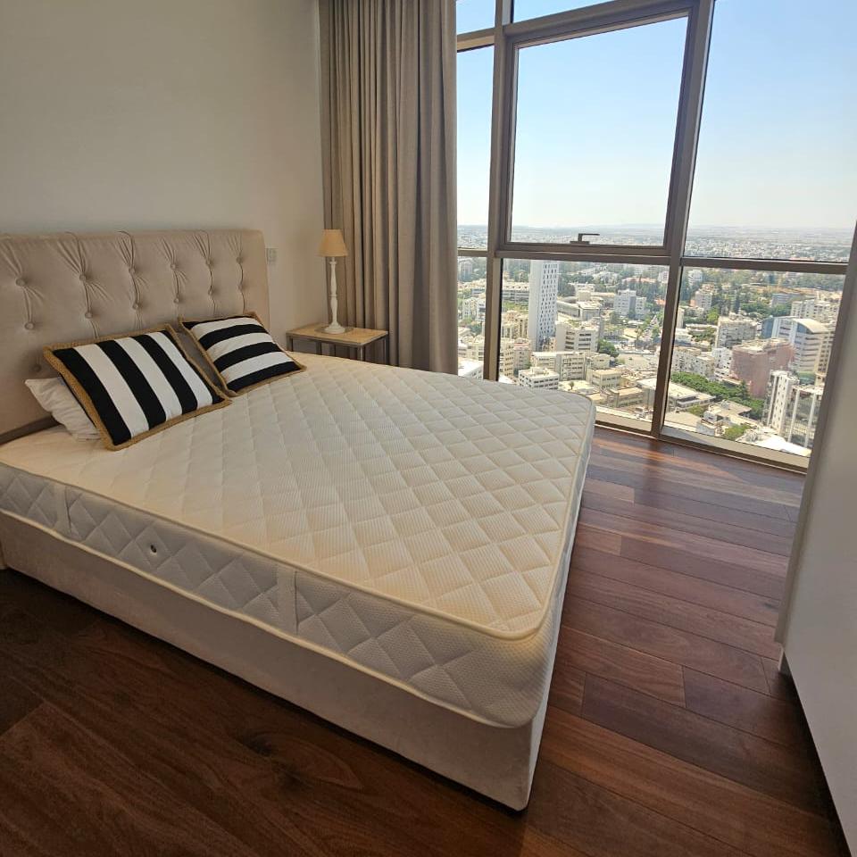 Сдаётся полностью меблированная двухспальная квартира площадью 100 м² в центре города Nicosia, с впечатляющим видом на город и значительную часть Кипра. Апартаменты оснащены современными VRV кондиционерами, системой подогрева с «тёплыми полами», вентиляцией, качественной мебелью, мраморными и паркетными полами, элитной сантехникой. Энергоэффективность класса А. Комплекс предлагает развитую инфраструктуру: на 10 этаже зона Relax/Enjoy с бассейном и террасой для загара, тренажёрный зал, оздоровительный центр с сауной и паровой баней, клуб для резидентов. На 33–34 этажах — рестораны и клубы. Доступны услуги круглосуточного консьержа и клининга. В здании также парковка, кладовая, лифт, бассейн, сауна, тренажёрный зал, закрытая охраняемая территория.