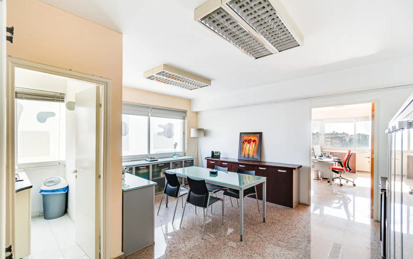 Сдаётся офис площадью 90 м² с панорамным видом на море в районе Germasogeia, Limassol. Офис полностью меблирован и готов к въезду, расположен на втором этаже с лифтом. Включает две основные зоны — просторную переговорную и отдельный кабинет руководителя, оборудован кухней и отдельным туалетом. Во всех помещениях установлены кондиционеры, большие окна обеспечивают отличное естественное освещение. Для удобства предусмотрены парковка и сигнализация. Энергетический класс A.