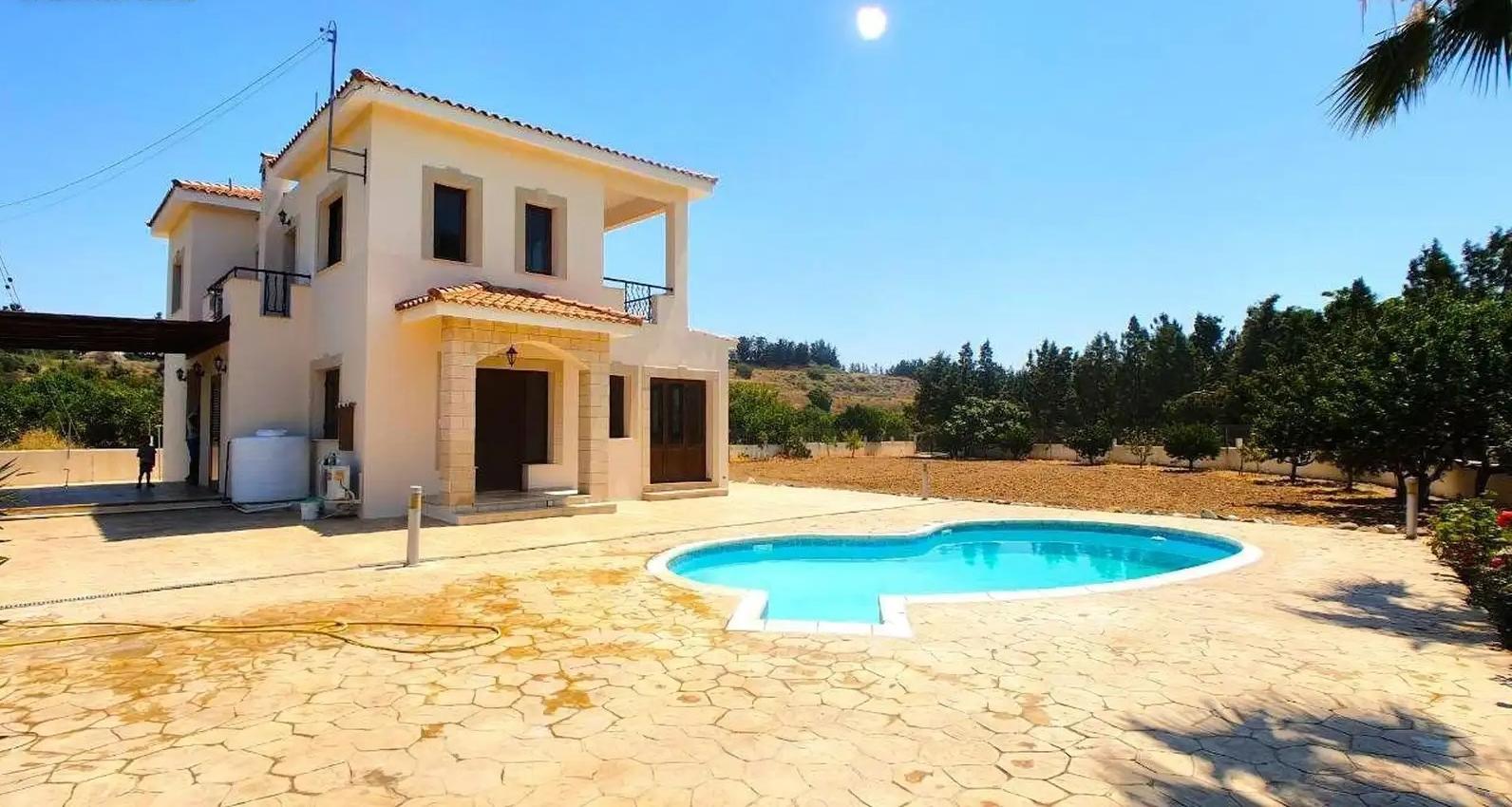 Сдается в аренду трехспальный дом площадью 130 м² в районе Mandria Pafou, город Paphos. Дом включает три спальни, две ванные комнаты, гостевой туалет, кухню, гостиную с обеденной зоной и балконы. На первом этаже расположена спальня с собственной душевой и гостевой туалет, на втором — две спальни, одна из которых также с душевой, а другая — рядом с семейной ванной комнатой. Дом не меблирован, оборудован системой кондиционирования во всех помещениях и центральным отоплением. На участке площадью 1650 м² имеется частный бассейн, сад и крытая парковка. Недвижимость расположена в тихом и уединённом районе деревни Mandria, всего в нескольких минутах от инфраструктуры и моря. Дом построен в 2010 году, класс энергоэффективности B+. Разрешено проживание с домашними животными.