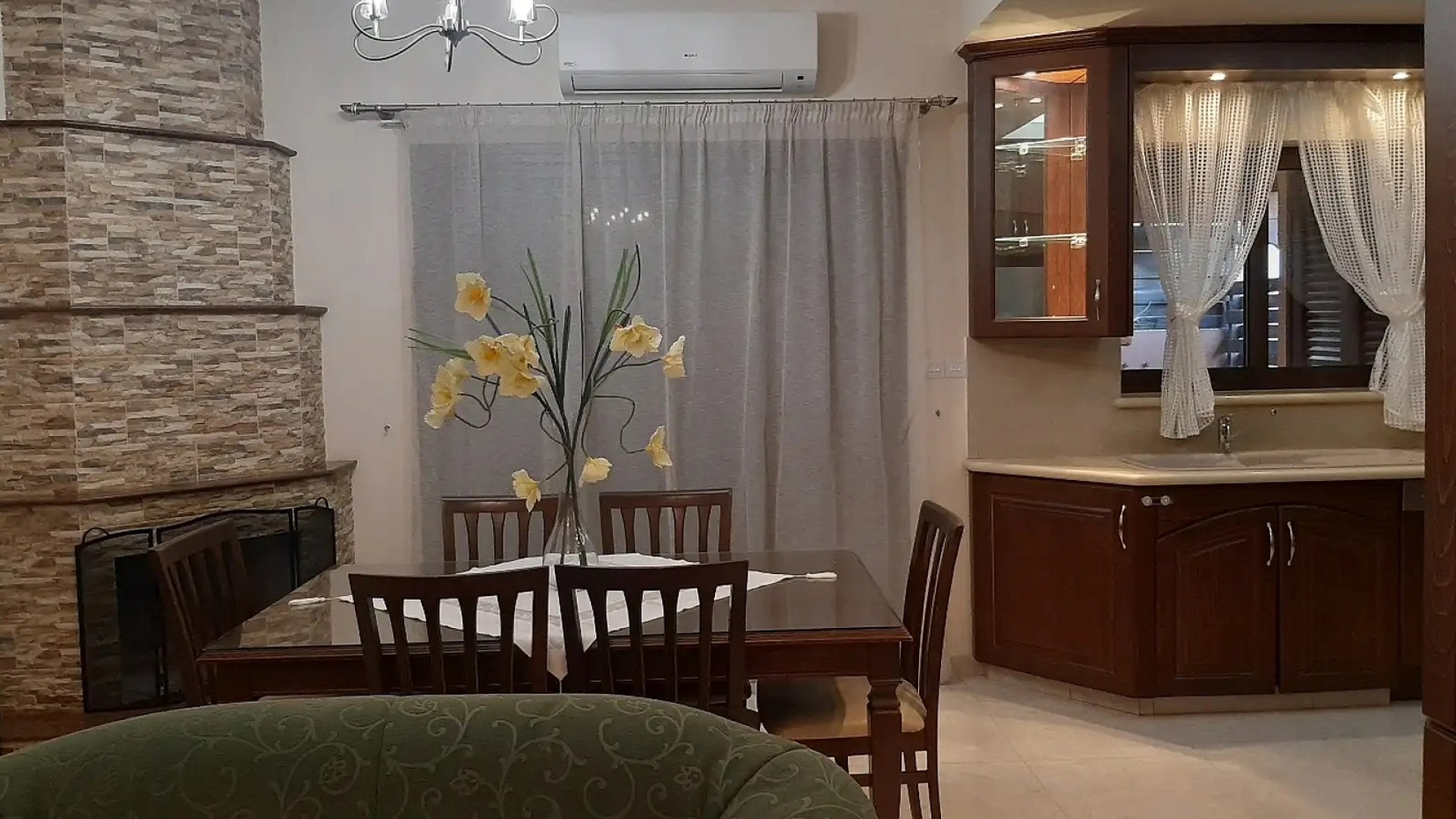 Сдается в аренду двухэтажный 4-спальный дом площадью 220 м² в районе Omonia, Limassol. Дом включает просторную кухню с обеденной зоной и камином, гостиную, столовую, игровую комнату, кабинет, три ванные комнаты (в том числе гостевой туалет и ванная при спальне), прачечную, кладовую, а также две крытые веранды и два балкона. На участке площадью 250 м² обустроен ухоженный сад и крытая парковка на два автомобиля с электрическими воротами. Дом полностью меблирован и оборудован всей необходимой бытовой техникой — в том числе кондиционерами во всех помещениях, солнечными панелями, жалюзи и шторами на окнах. Недвижимость расположена в удобном и спокойном районе недалеко от New Port, My Mall и City of Dreams Casino, что обеспечивает быстрый доступ к магазинам, развлечениям и городской инфраструктуре.