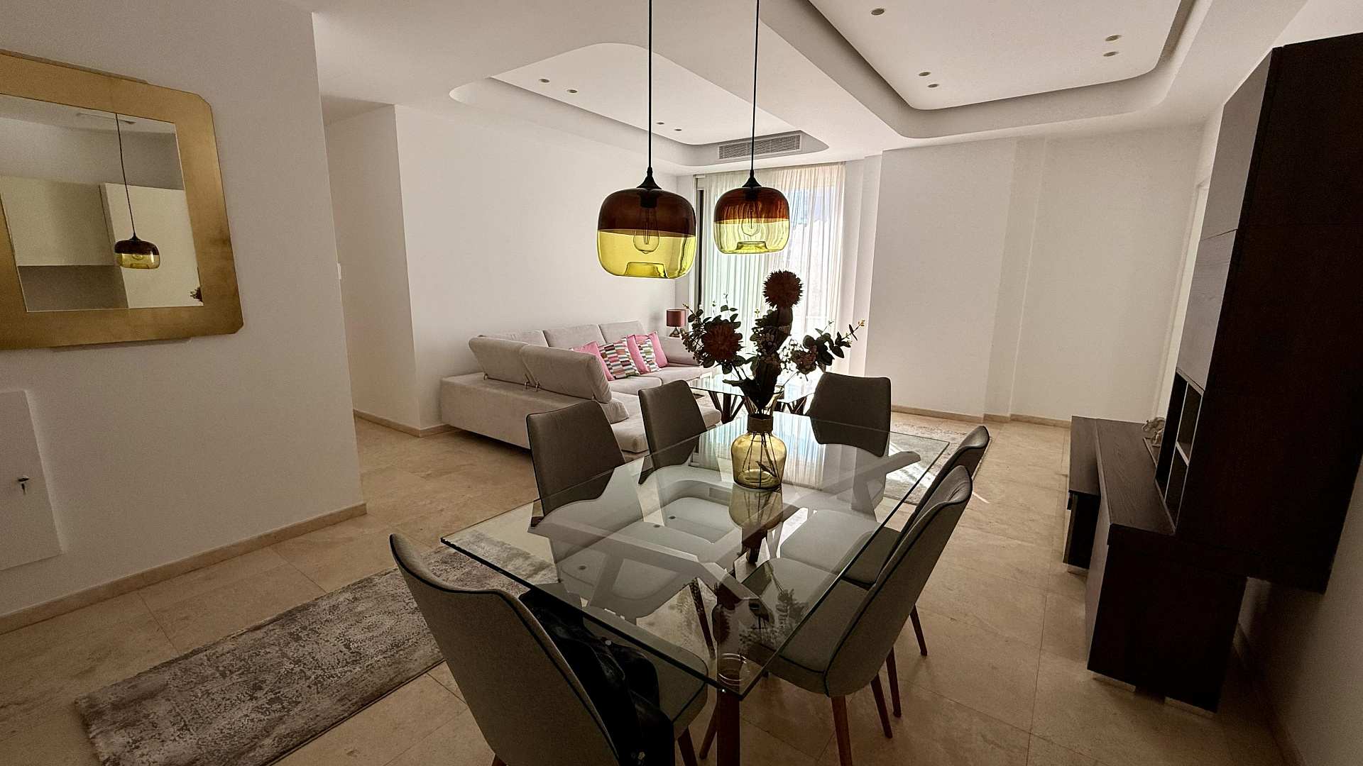 Сдается в аренду трехспальная квартира площадью 100 м² в районе Agios Tychonas, Limassol. Апартаменты включают три спальни, две ванные комнаты (одна из них en suite), кухню открытого плана, гостиную и балкон с видом на окрестности. Квартира полностью меблирована и оборудована всей необходимой бытовой техникой, оснащена системой кондиционирования во всех комнатах, двойными стеклопакетами, сигнализацией и электрическими воротами. Резиденция расположена в тихом районе, в комплексе с общим бассейном, садом и лифтом. В пешей доступности находятся пляж, автобусная остановка и вся городская инфраструктура — магазины, кафе и рестораны.