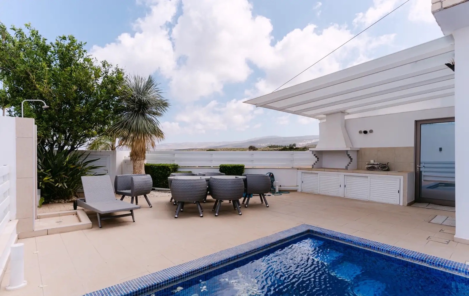 Жильцам доступен сервис— уборка, доставка еды, трансферы и другие услуги по запросу. Вилла идеально подойдёт для тех, кто ищет стильное и уединённое жильё с атмосферой отдыха на фоне природы Кипра.