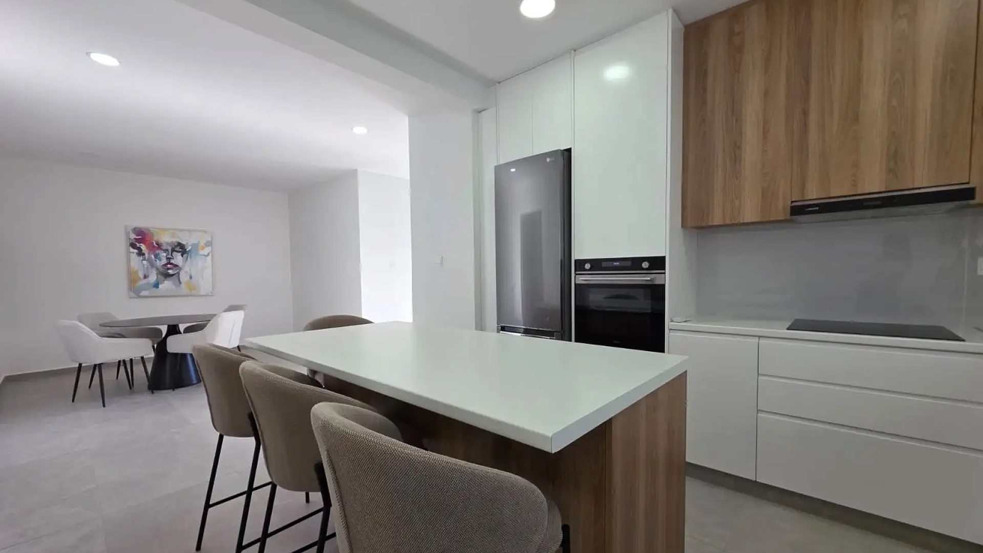 Сдается в аренду двухуровневый дом (semi-detached) площадью 135 м² в районе Mesa Geitonia, Limassol. Дом включает три спальни, две ванные комнаты (одна из них en-suite), гостевой туалет, просторную гостиную, современную кухню и обеденную зону. Недвижимость полностью меблирована и оборудована — установлены кондиционеры во всех комнатах, электрические роллеты, вся необходимая бытовая техника. На территории имеется одно открытое парковочное место. Дом расположен в спокойном жилом районе Mesa Geitonia с удобным доступом к основным дорогам, магазинам, школам и другим удобствам города. Энергетический класс — B+, что обеспечивает экономичное потребление электроэнергии.