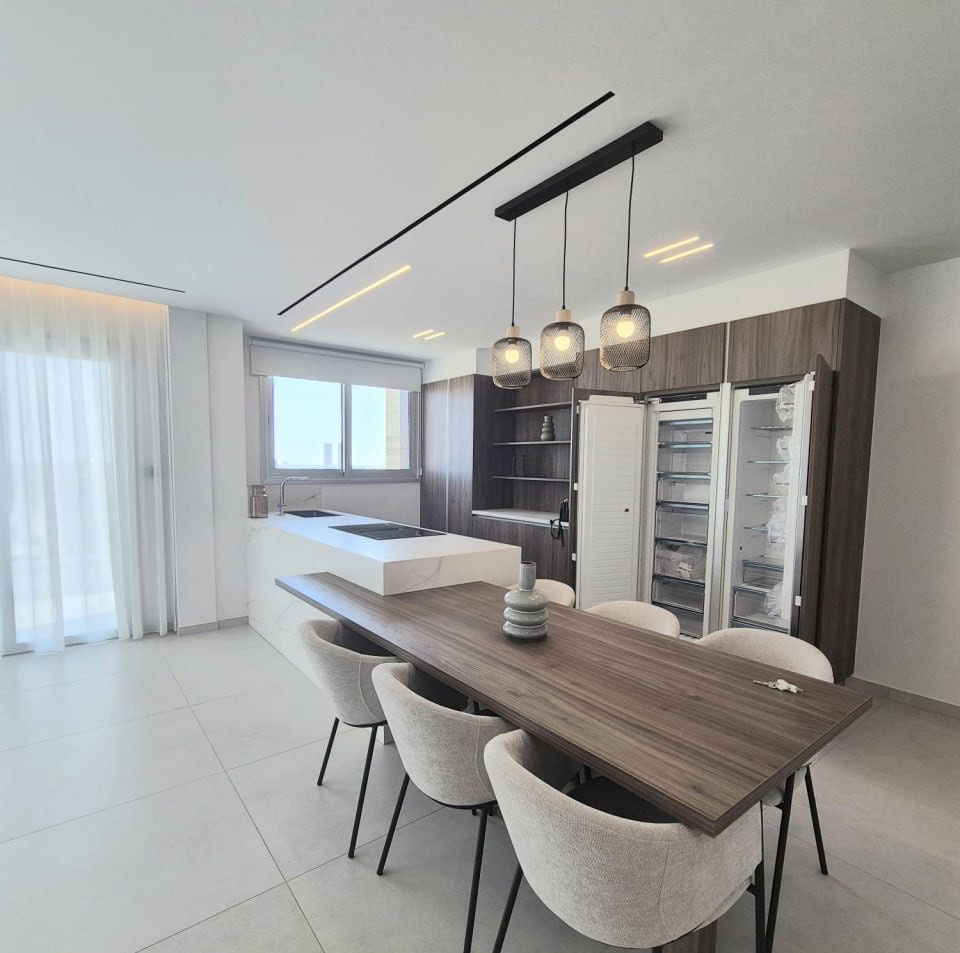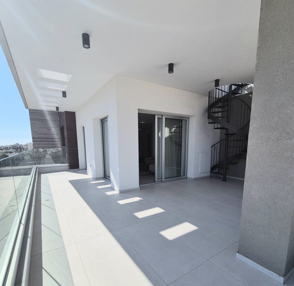 Сдается в аренду четырехспальный пентхаус площадью 150 м² в районе Agios Athanasios, город Limassol. Пентхаус включает четыре спальни (3 основные и одна дополнительная), три душевые комнаты, три туалета, просторную гостиную, кухню открытого типа, балконы, кладовую и мансарду. Недвижимость полностью меблирована, оснащена современной бытовой техникой и системой кондиционирования воздуха во всех комнатах. Здание новое, построено в 2025 году, с энергоэффективностью класса A, оборудовано лифтом и крытой парковкой.