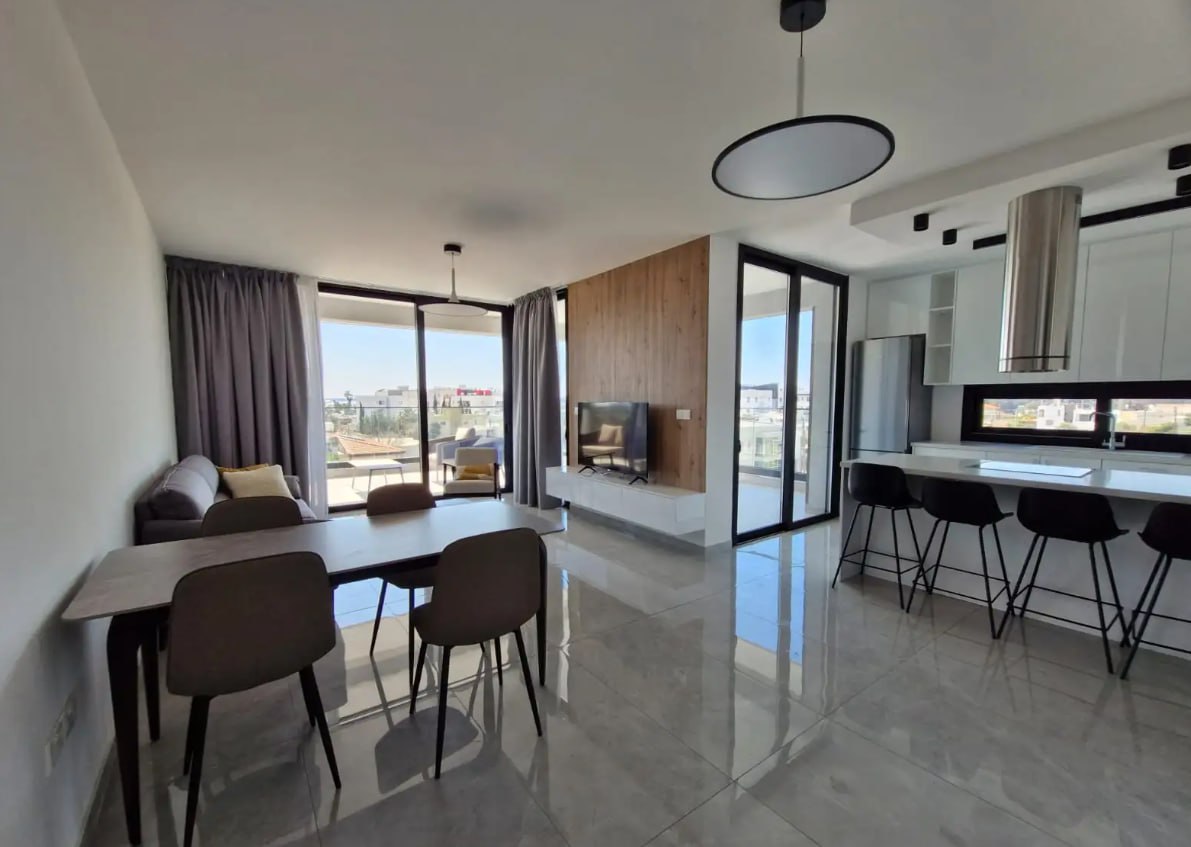 Сдаётся современная и просторная двухспальная квартира рядом с My Mall, Limassol, расположенная на втором этаже нового здания, состоящего всего из шести квартир. Жилая площадь составляет 85 м², а общая площадь крытых веранд — 44 м², включая большую террасу 39 м² с выходом из гостиной и кухни, а также отдельные веранды в каждой спальне. Квартира полностью меблирована качественной современной мебелью и оснащена бытовой техникой Bosch. Планировка включает гостиную с кухней открытого типа и две ванные комнаты. В каждой комнате установлены индивидуальные кондиционеры. В наличии крытая парковка, кладовая и лифт.