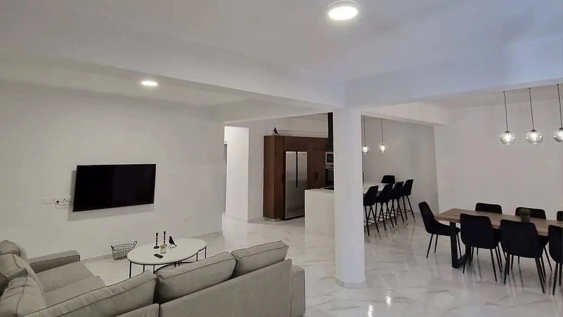 Сдается в аренду двухэтажный 4-спальный дом площадью 200 м² в районе Theletra, Paphos. Дом включает просторную гостиную, открытую кухню, четыре спальни, три ванные комнаты, дополнительную кухню, офисный стол, балконы и подвал площадью 100 м². Главная спальня оснащена 32-дюймовым Smart-TV и отдельной ванной комнатой. Недвижимость полностью меблирована и оборудована современной бытовой техникой: новым холодильником Side-by-Side, стиральной машиной, 55-дюймовым Smart-TV, угловым диваном, кондиционерами во всех помещениях и электрическими обогревателями. Всего в доме 5 кроватей. Имеется дровяная печь. На участке предусмотрен сад и большая крытая парковка. Дом расположен в тихом и живописном районе с дружелюбными соседями, всего в 2 минутах езды от супермаркетов, ресторанов, таверн и заправок. До центра Пафоса — 15–20 минут, до пляжа Латси — около 10 минут.