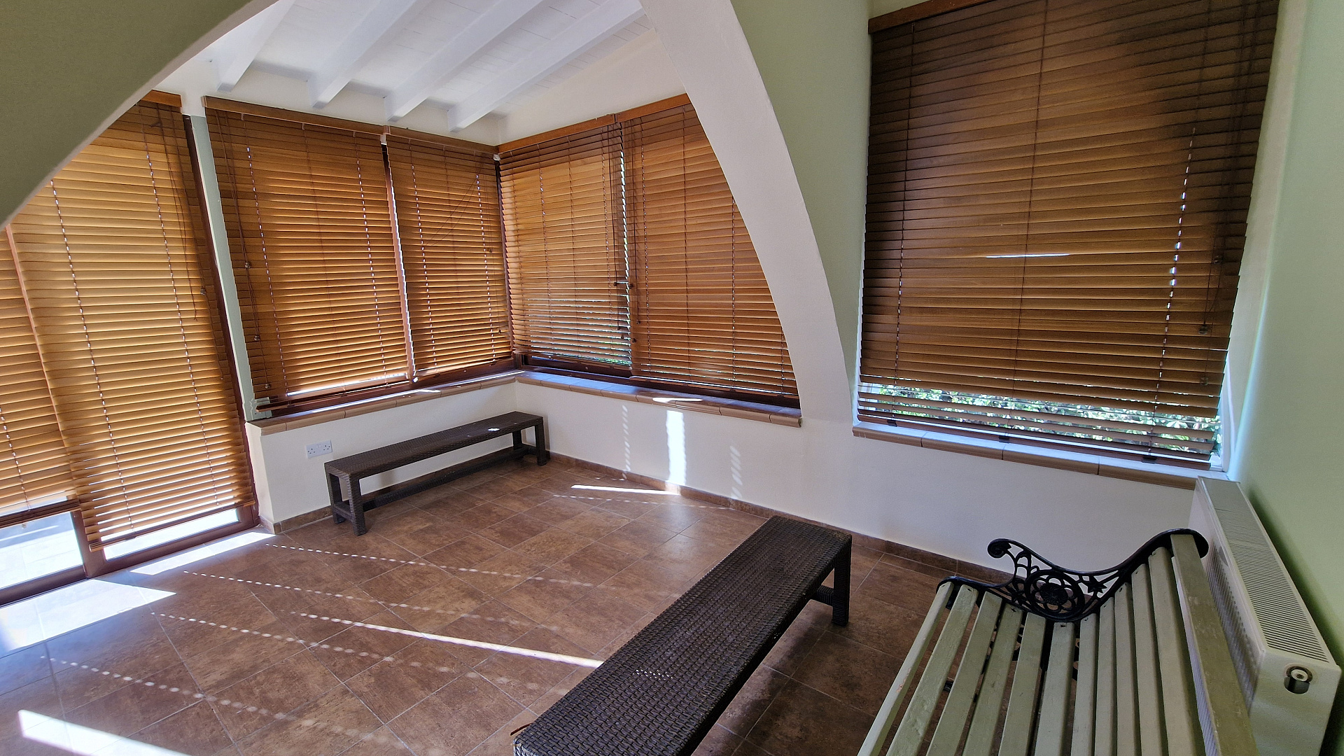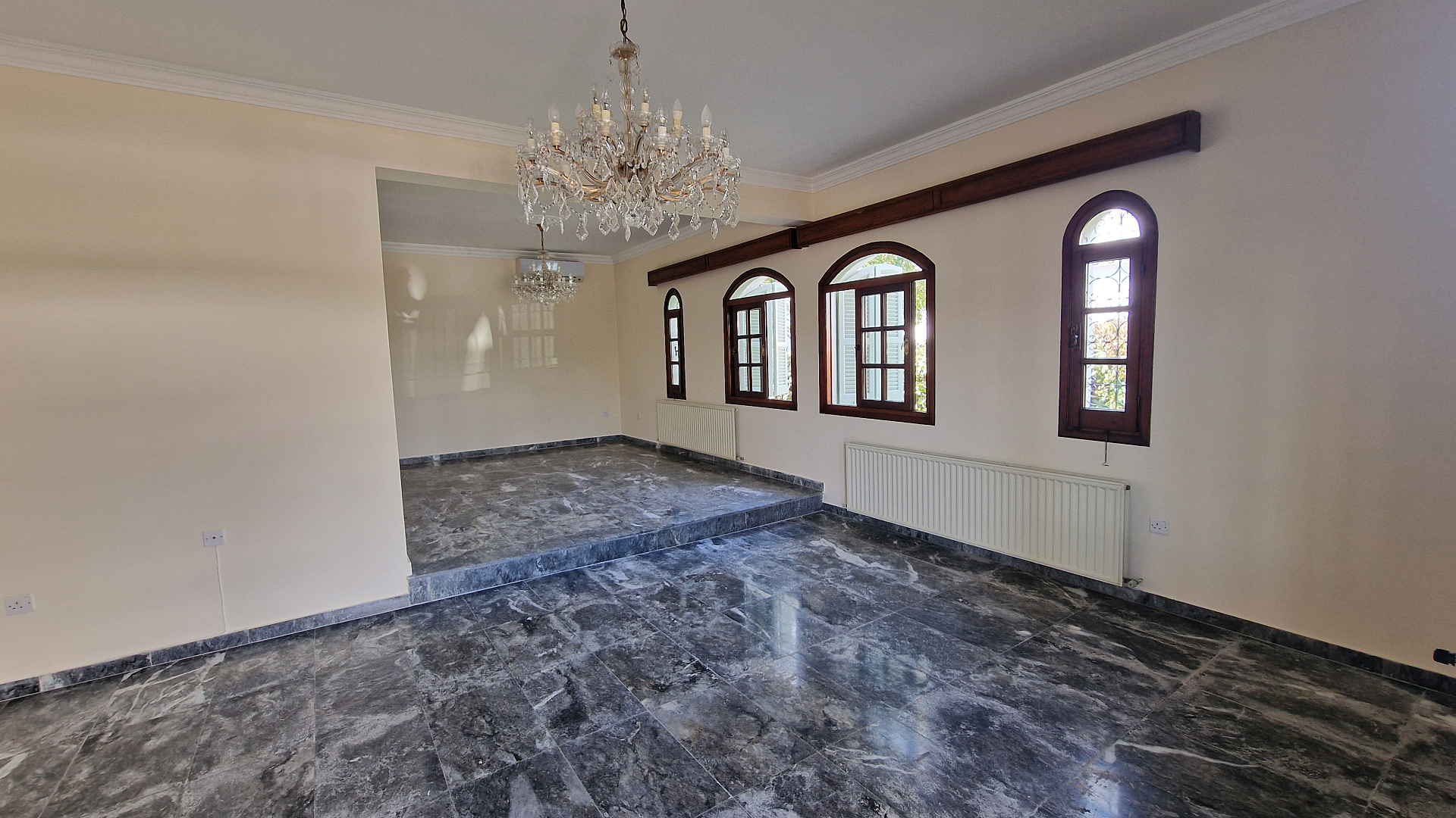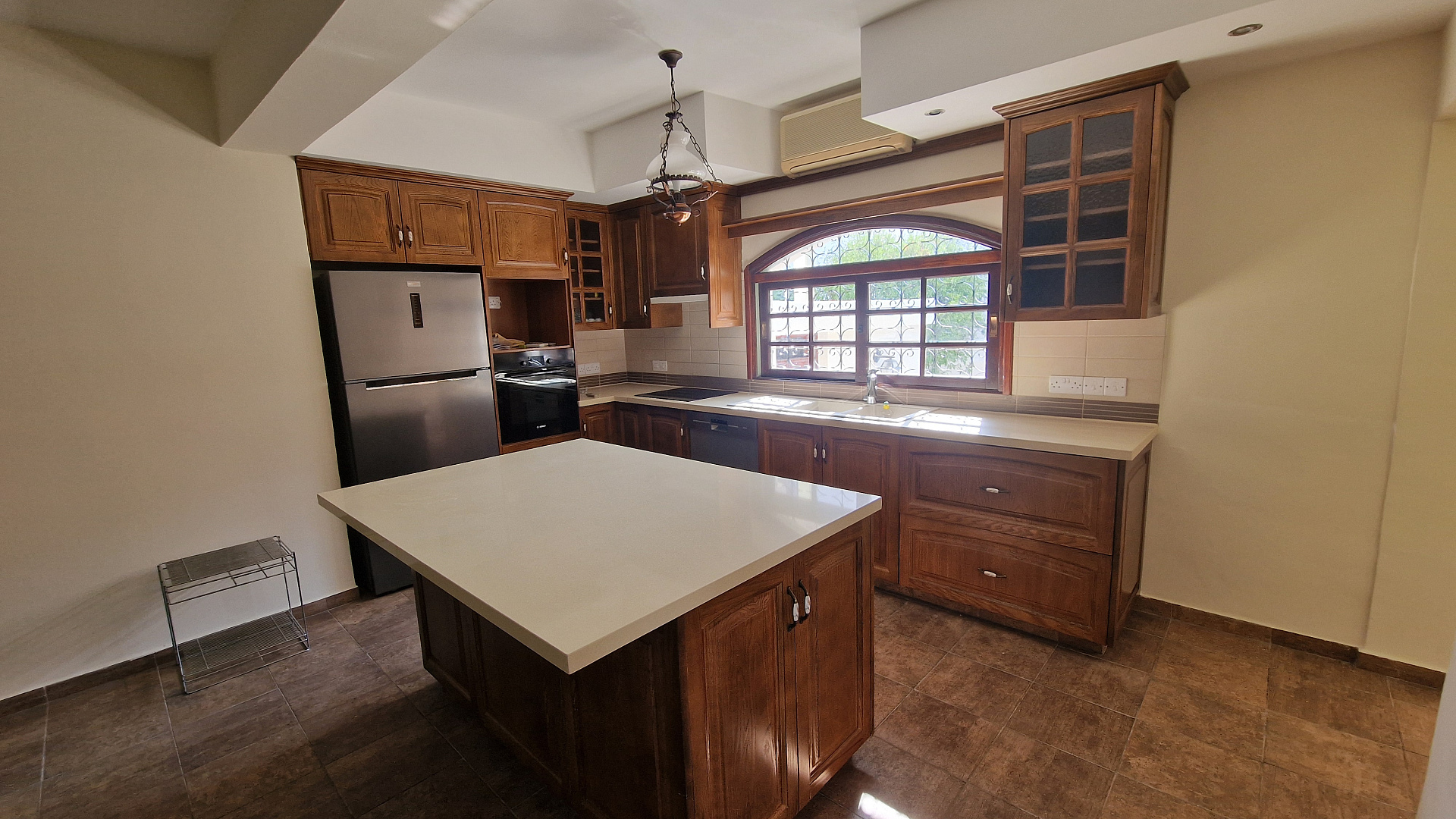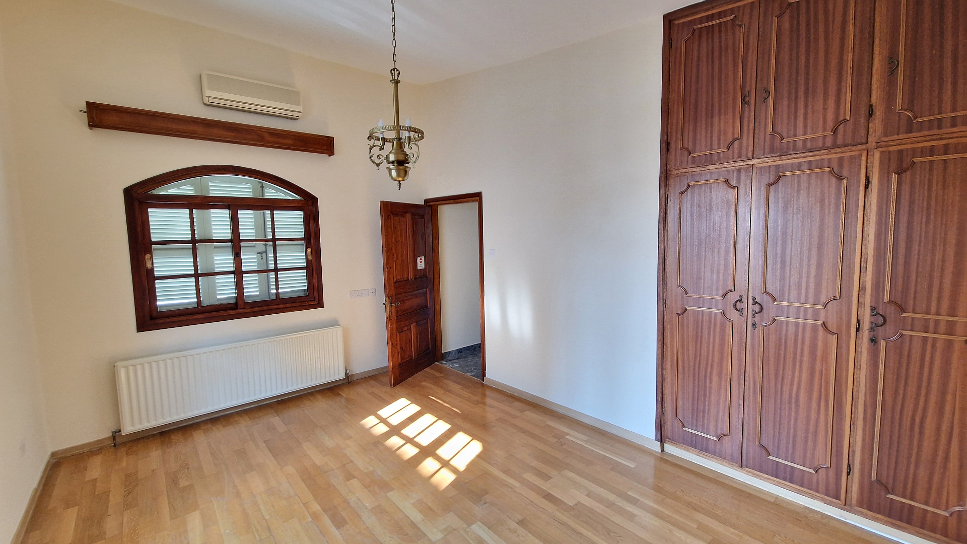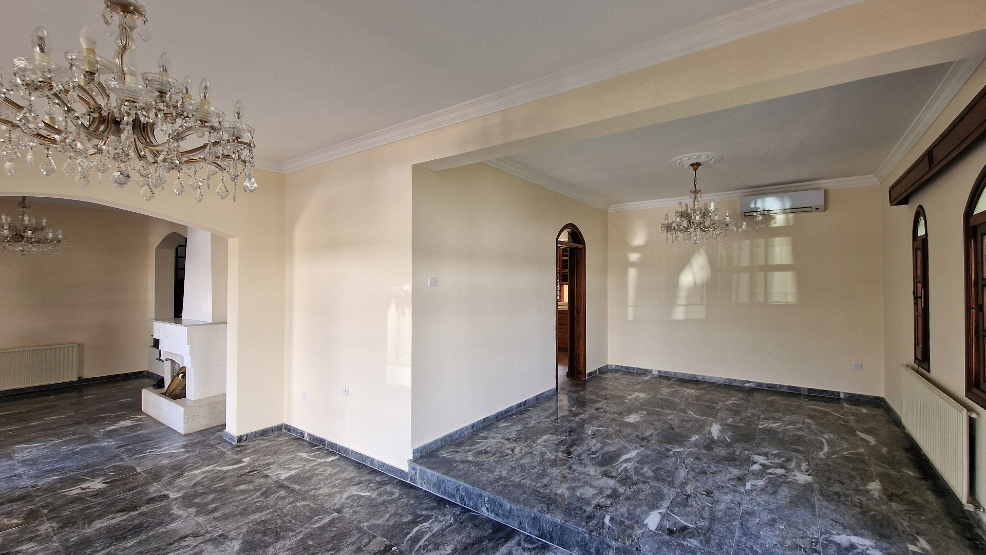 Сдаётся пятиспальный дом в районе Aglantzia, Nicosia. Общая площадь дома — 350 м², участок — 550 м². Дом недавно отремонтирован, частично меблирован (техника только), полностью оснащён кондиционерами и центральным отоплением. На основном уровне расположены три спальни, светлая гостиная с камином, отдельная большая кухня со вторым камином, дополнительная зона отдыха и прямой выход на веранду и сад. В полуподвальном помещении находятся ещё две спальни, которые могут использоваться как офис, гостевые комнаты, игровая или комнаты для персонала. В доме три санузла: основная ванная, гостевой туалет и туалет с душем. Снаружи — большая передняя веранда, закрытая веранда у кухни, приватный сад, гараж с воротами, а также крытая и открытая парковка. Дом расположен на тихой жилой улице рядом с супермаркетами, парками, университетом и основными дорогами.