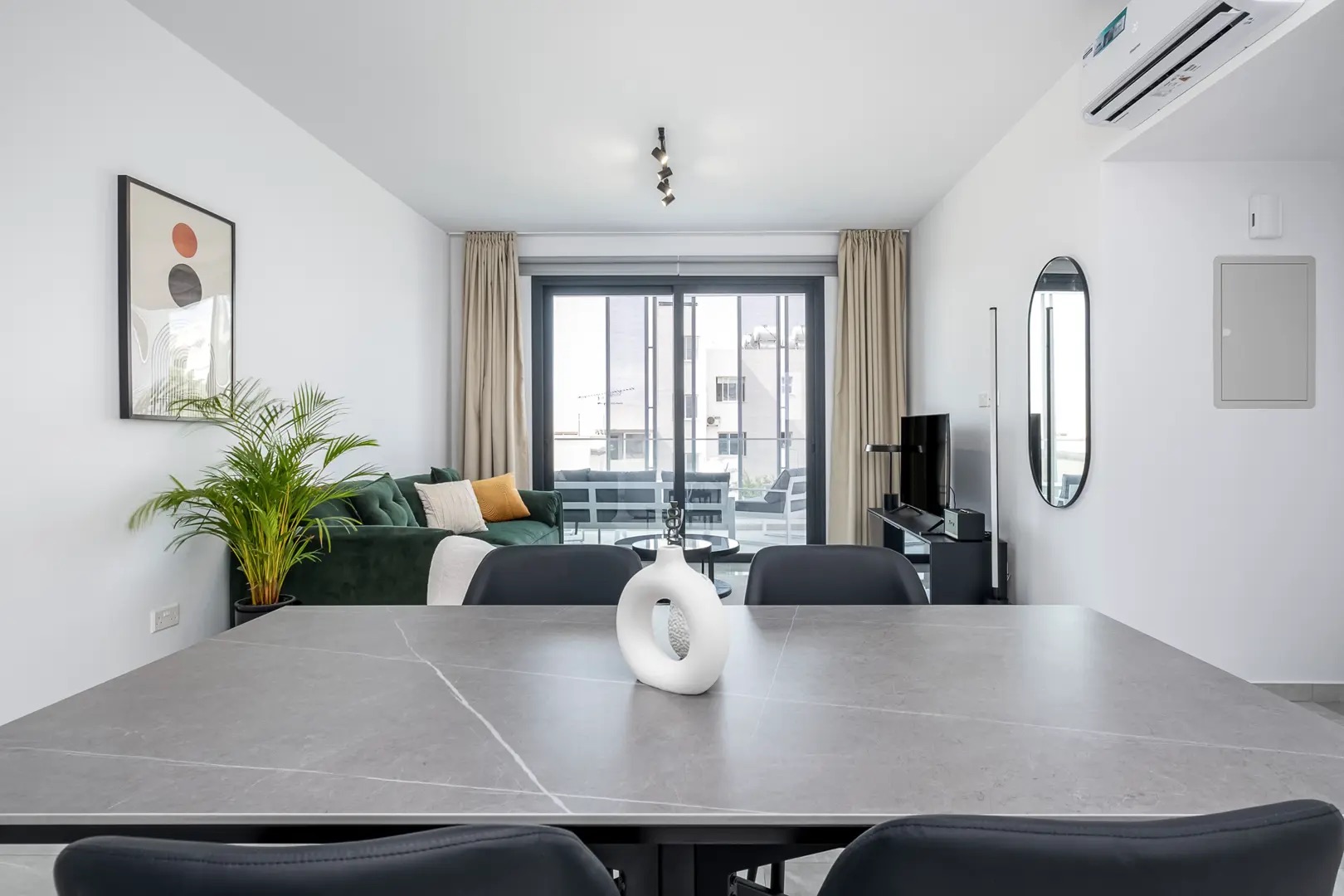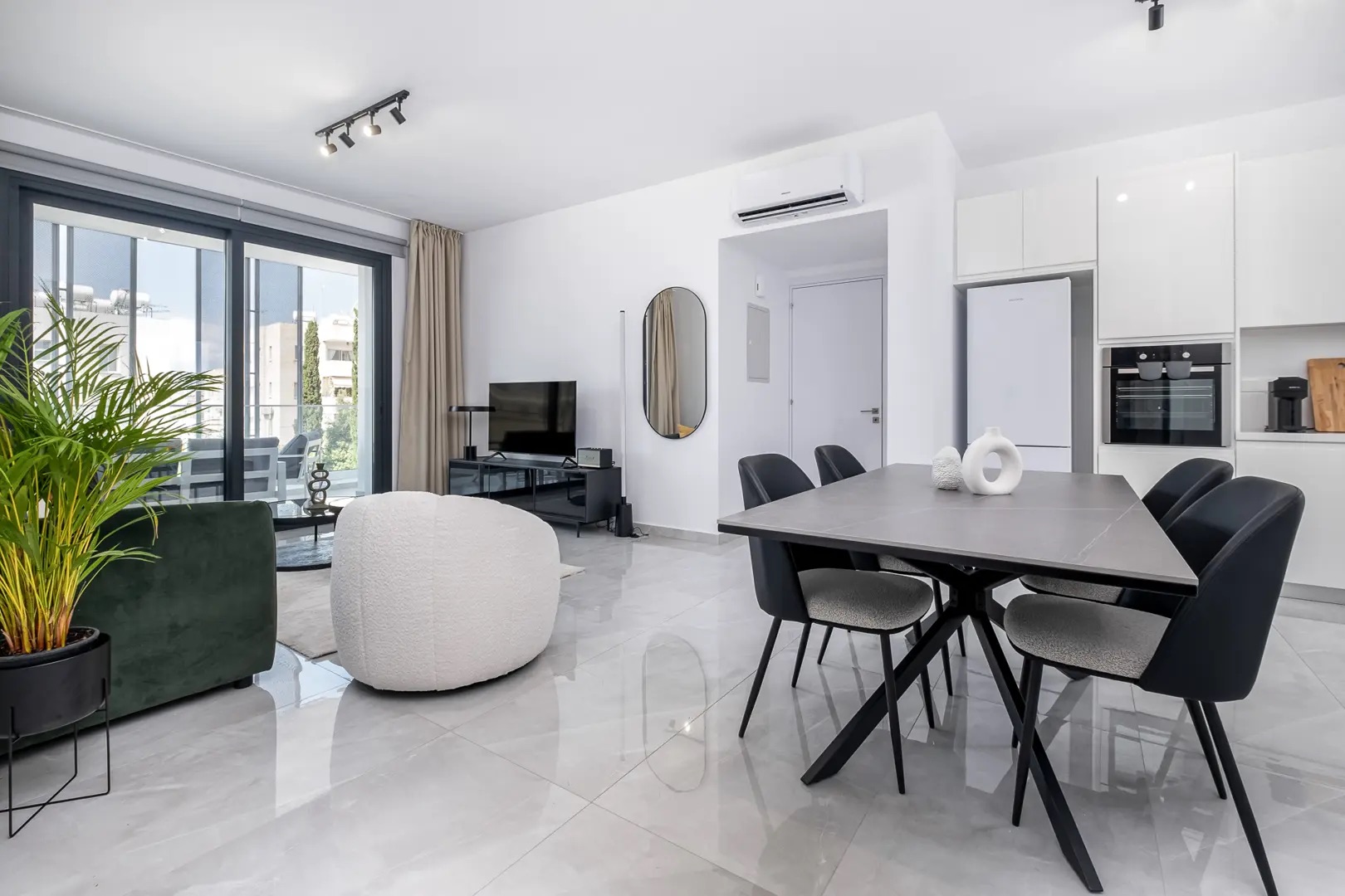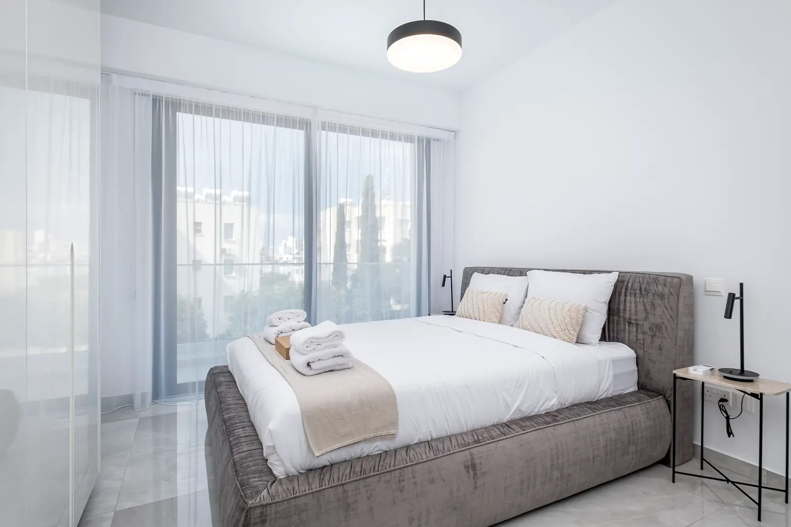 Сдается в аренду двухспальная квартира площадью 75 м² в районе Town Center Papho, город Paphos. Апартаменты включают две спальни, одну ванную комнату, кухню, просторную гостиную и частный балкон. Недвижимость полностью меблирована и оборудована современной бытовой техникой: Marshall акустической системой, Smart TV, посудомоечной машиной, духовкой, варочной панелью, вытяжкой, микроволновой печью, холодильником, кофемашиной Nespresso, чайником, утюгом, феном, пылесосом и стиральной машиной. Также в апартаментах есть кондиционеры, интернет Wi-Fi и сейфовая входная дверь. Комплекс оснащён лифтом, общим бассейном, солярием и крытой парковкой; доступ 24/7.