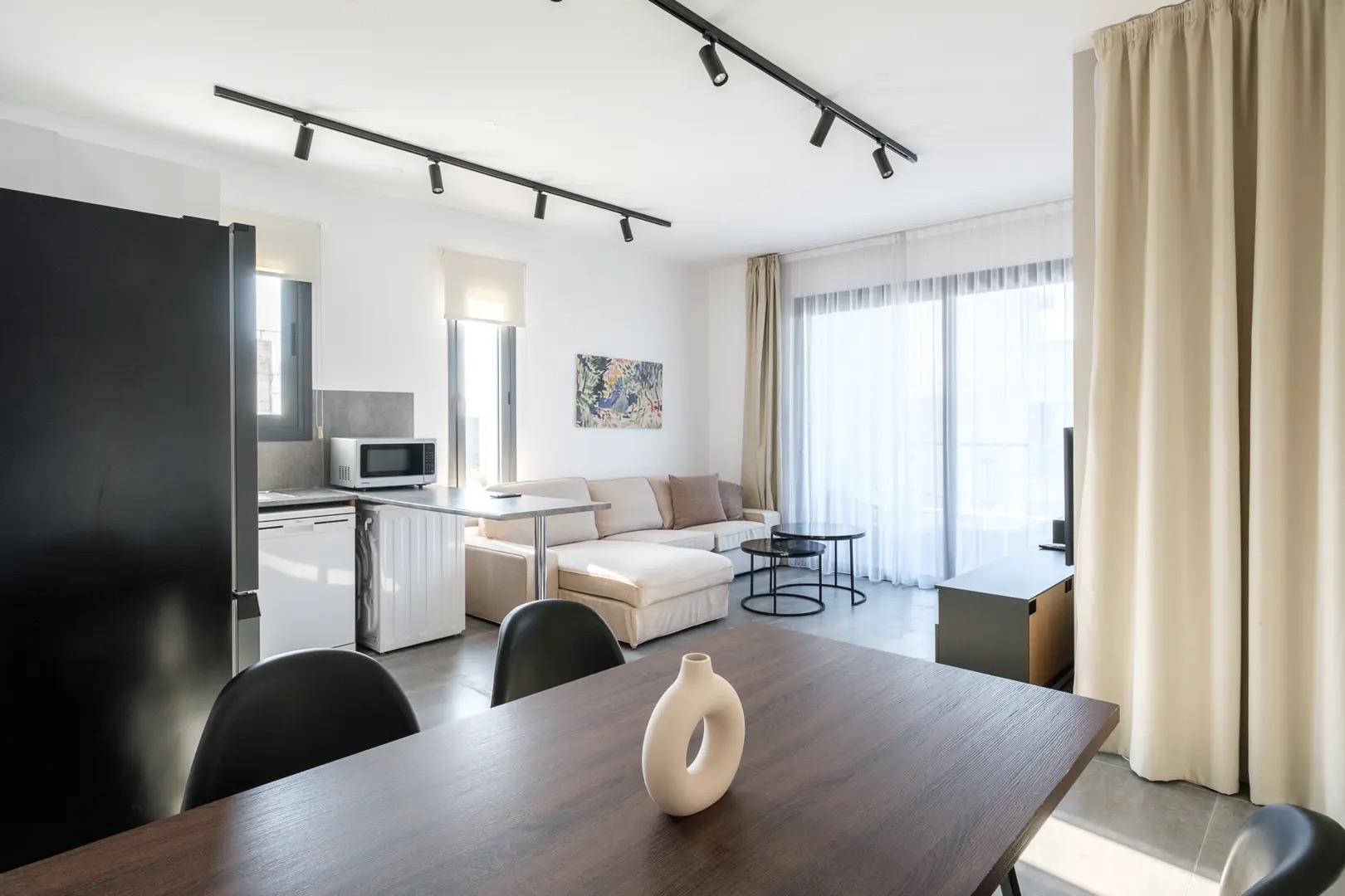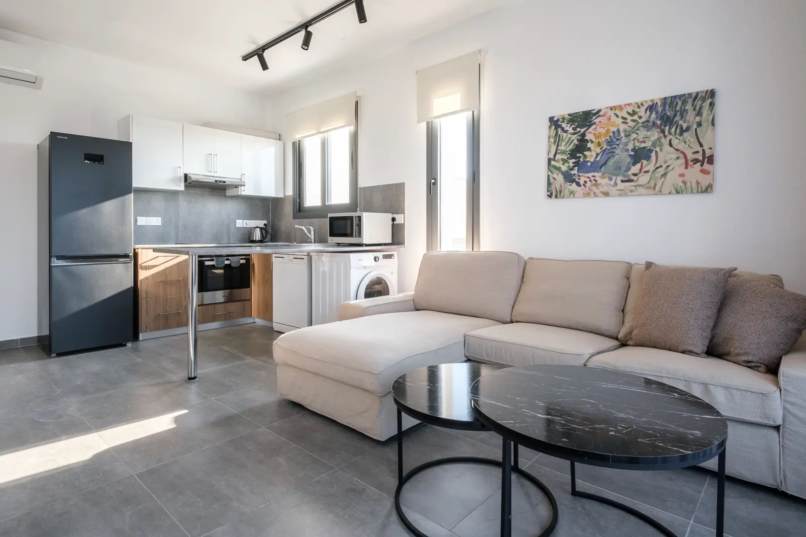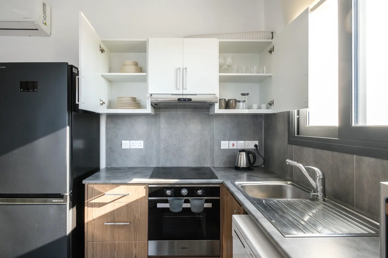 Сдается в аренду двухспальные апартаменты площадью 100 м² в районе Town Center Paphos, город Paphos. Апартаменты включают две спальни, две ванные комнаты, просторную гостиную, полностью оборудованную кухню, частный балкон с видом на город, кладовую и место на частной парковке. Апартаменты полностью меблированы и оснащены всей необходимой бытовой техникой: кондиционеры во всех комнатах, стиральная и сушильная машины, посудомоечная машина, духовка, варочная панель, вытяжка, холодильник, микроволновая печь, кофемашина Nespresso, электрический чайник, утюг, пылесос, телевизор Smart TV, аудиосистема Marshall, фен, отопление, интернет Wi-Fi и система безопасности с бронированной дверью.