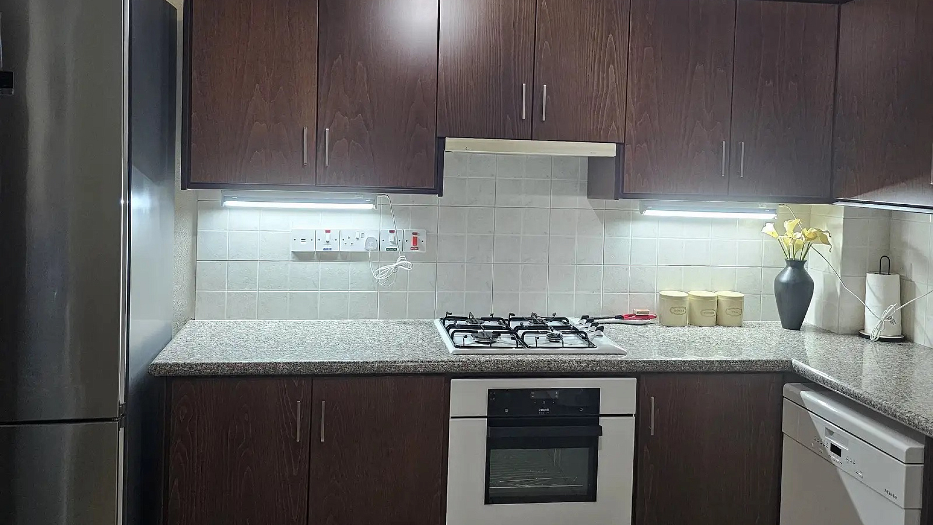 Сдается в аренду трехспальная квартира площадью 125 м²в районе Tsirion, Limassol. Квартира расположена на первом этаже здания, отличающегося антисейсмической конструкцией, аварийными выходами, противопожарными дверями и доступом для людей с ограниченными возможностями. Апартаменты включаюттри спальни, две ванные комнаты (одна с душем, другая с ванной), гостевой санузел, просторную гостиную с обеденной зоной, полностью оборудованную кухню, а также балкон и кладовую комнату. Квартира полностью меблирована и оснащена современной бытовой техникой: кондиционеры во всех помещениях, холодильник Bosch, варочная панель и духовой шкаф Zanussi, посудомоечная машина Miele, стиральная машина LG, телевизоры Samsung Smart TV(65″ в гостиной и 40″ в спальне), фотогальваническая система для экономии электроэнергии. В распоряжении жильцов крытая парковка и кладовая. Здание расположено в привилегированном районе, рядом с Spyrou Kyprianou Avenue и Nikos & Despinas Pattichi Avenue. В пешей доступности находятся киоск, пекарня, аптека, рынок фруктов, кафе, гриль-хаус, магазин мороженого, начальная школа Tsireio Primary School и частная клиника. До центра Лимассола — менее 4 км (около 10 минут езды).