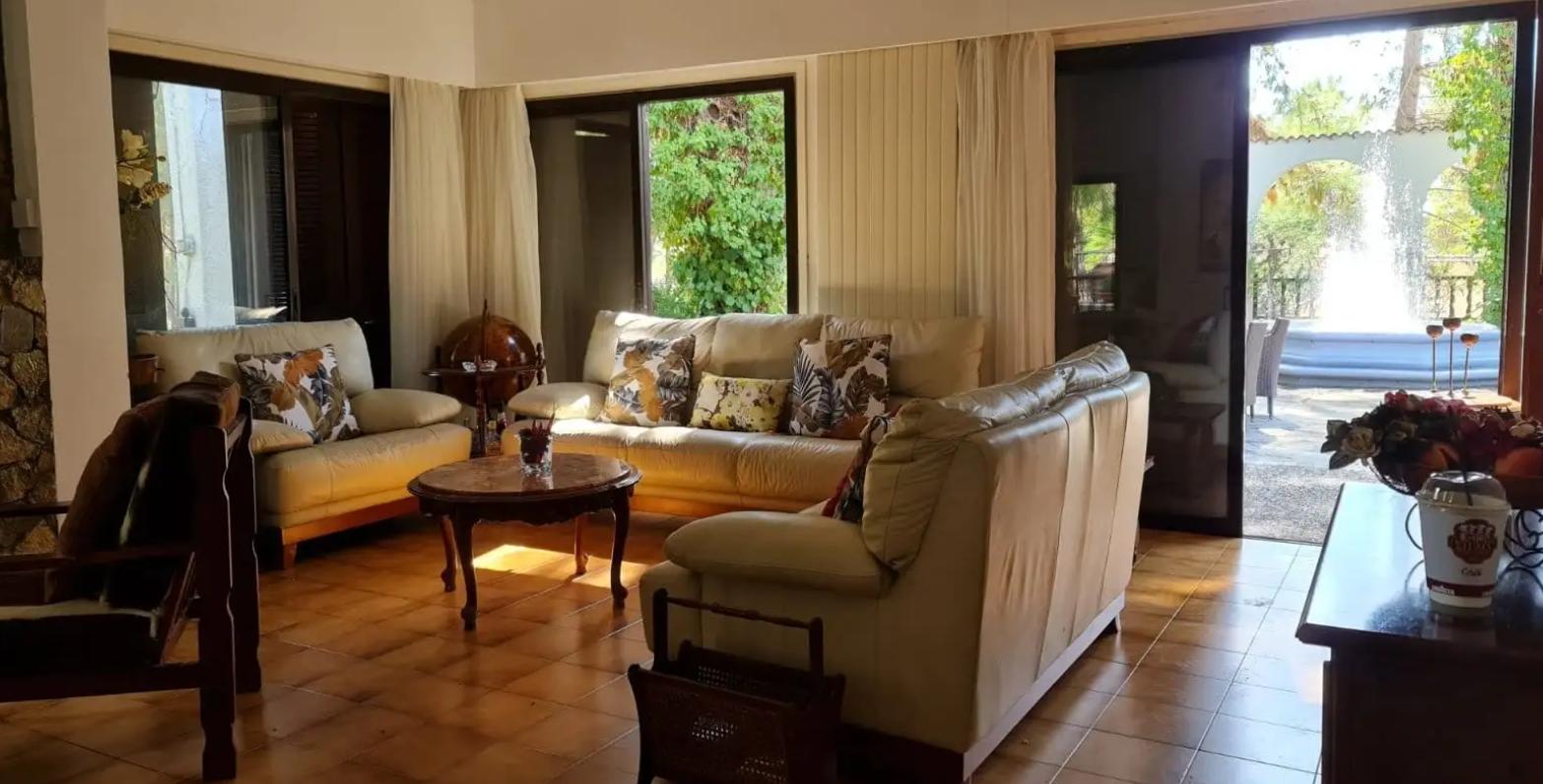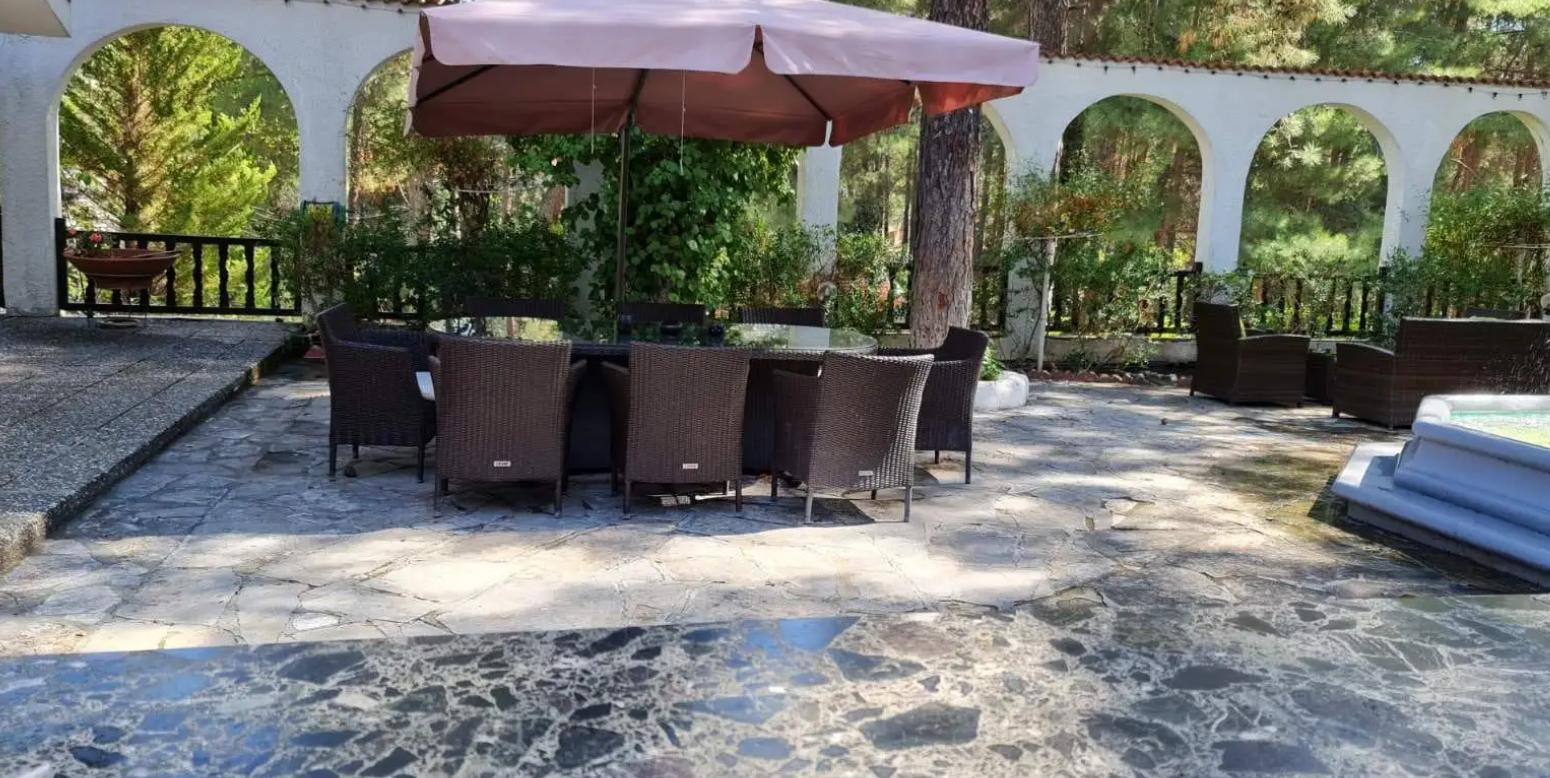 Сдаётся шестиспальная вилла в районе Moniatis, Limassol. Вилла расположена на участке 1400 м² и полностью меблирована. Основной дом включает три спальни и три ванные комнаты общей площадью 300 м², гостевой дом — две спальни и одна ванная комната площадью 80 м², а также студию с ванной и комнату для персонала. На территории находится бассейн, центральное отопление и кондиционирование, зона барбекю, фонтан и детская площадка. Парковка открытая. Вилла оборудована всеми удобствами для комфортного проживания.