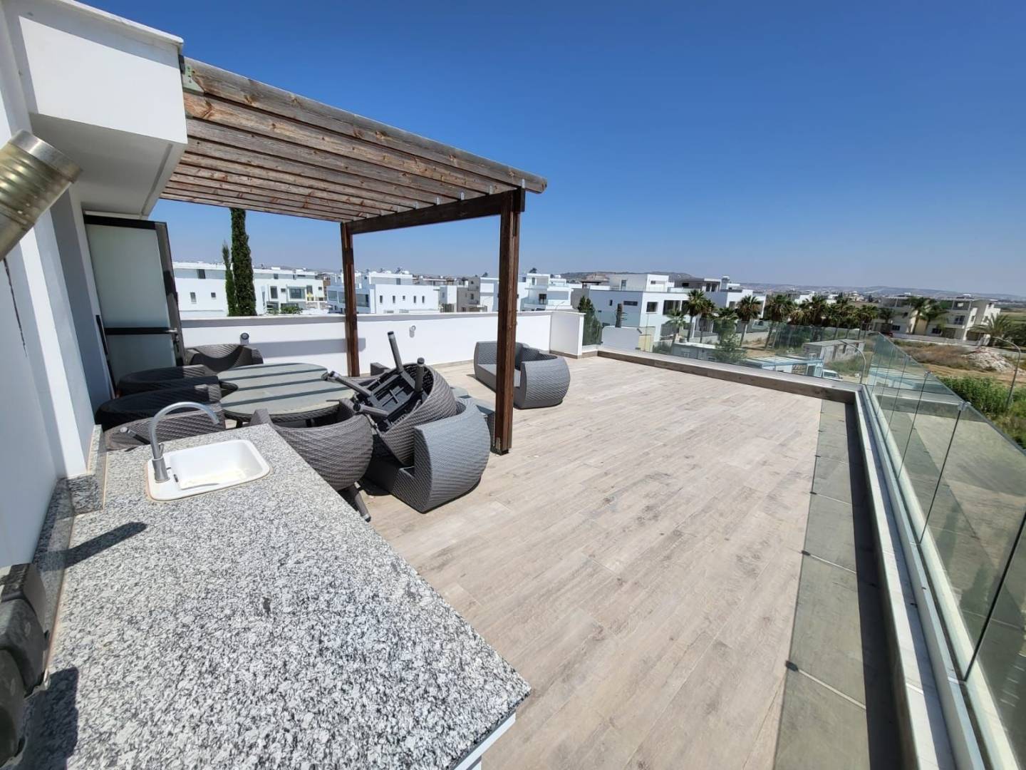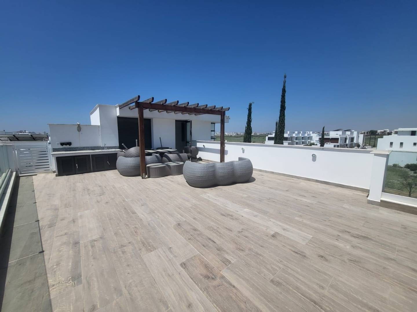 Сдаётся в аренду вилла с тремя (+1) спальнями en-suite в Livadia (Larnaca). В пешей доступности от моря. Полностью меблирована и оборудована бытовой техникой, кондиционерами. Приватный бассейн во дворе и сад с плодовыми деревьями. Большая терраса на крыше с красивыми видами. Крытый паркинг.