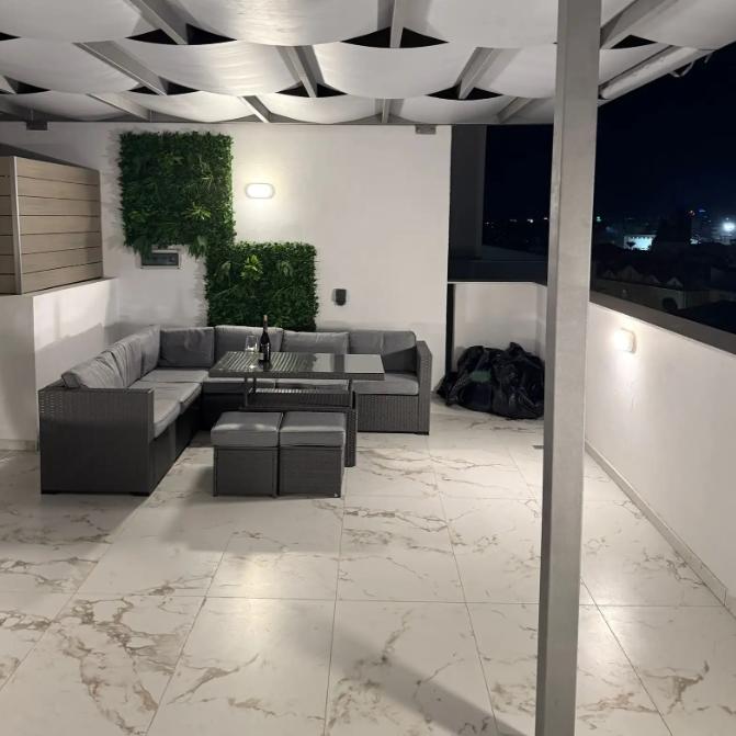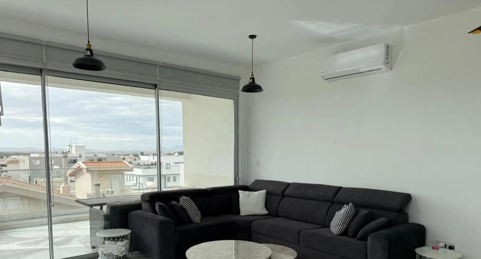Сдаётся трёхспальный пентхаус в районе Aglantzia, Nicosia, на третьем этаже нового дома 2025 года постройки. Пентхаус полностью меблирован и оснащён современной техникой, «умными» системами и кондиционерами во всех комнатах. Жилая площадь — 120 м², плюс 75 м² крытого приватного сада и веранд с панорамным видом, оборудованных перголой, зоной барбекю и обеденной зоной. В доме три спальни (одна с собственной ванной), ещё две ванные комнаты и гостевой туалет, просторная гостиная объединена с кухней открытой планировки. Есть водоочистка, встроенная техника, отопление и горячее водоснабжение с солнечными панелями, планируется установка фотогальванических панелей. Пентхаус имеет дизайнерское освещение, качественную мебель, смарт-ТВ, двойные стеклопакеты, крытую парковку и кладовую. Район тихий, рядом все удобства. Энергетический класс — A.