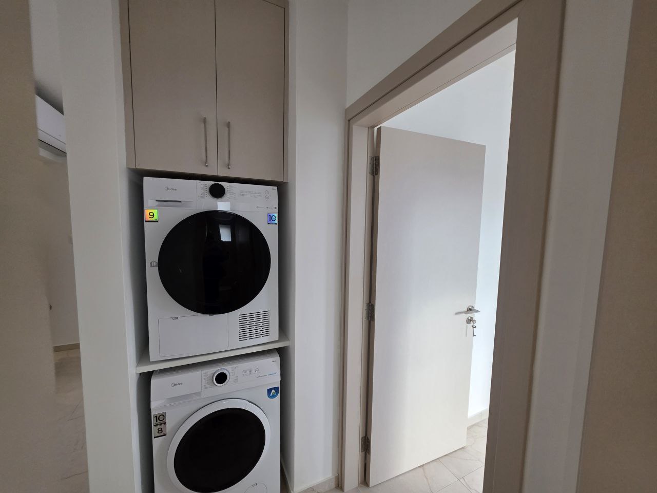 Сдаётся двуспальная квартира в районе Aradippou (Vergina), городе Larnaca, расположенная в абсолютно новом современном комплексе из шести квартир в тихом и уютном месте рядом со всеми удобствами, при этом Metropolis Mall находится всего в пяти минутах езды, а центр Larnaca — в десяти. Квартира оборудована бытовой техникой, включая посудомоечную и сушильную машины, украшена декоративной подсветкой и оснащена фотовольтаическими панелями мощностью 2.5 kW, имеет два крытых парковочных места и кладовую, расположенную на крыше. Планировка включает прихожую зону, просторную гостиную с выходом на крытую веранду с видом на зелёный парк, кухню открытого плана с большим количеством мест для хранения, две спальни и две ванные комнаты, а при необходимости квартира может быть полностью меблирована по запросу.