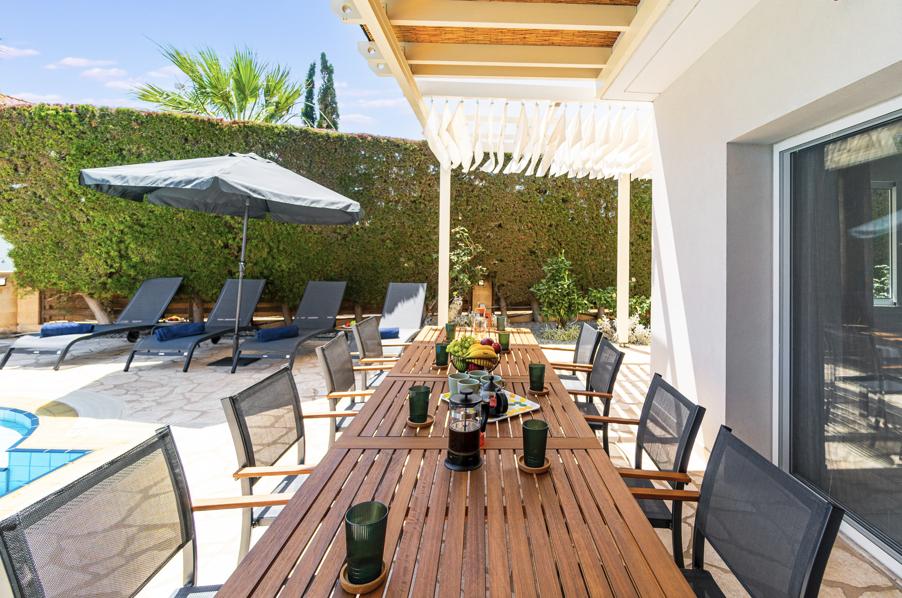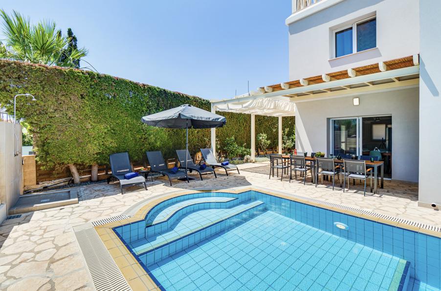 Сдается 3 спальный дом в Pernera, Famagusta. Дом представляет собой отдельно стоящее двухэтажное здание с тремя спальнями. На втором этаже расположены три спальни, одна из которых имеет собственную ванную комнату. Там же находится ещё одна ванная комната с ванной. На первом этаже размещён гостевой туалет. Полностью доступная крыша создаёт дополнительное пространство, с которого открывается вид на море и можно наслаждаться звёздным небом. Дом сдаётся с полностью оборудованной кухней, бытовой техникой, системой кондиционирования в каждой комнате, полами с подогревом и полной меблировкой. Дом удобно расположен на верхней дороге, которая проходит параллельно набережной, что обеспечивает лёгкий доступ к пляжам Kalamies, Serena и Vrysoudi. Реновация, завершённая в 2024 году, значительно повысила качество дома и улучшила его энергоэффективность благодаря внешнему утеплению. В 2026 году запланирована установка солнечных панелей, что сделает дом ещё более современным и экономичным. На территории имеется крытая парковка и большой бассейн. Уютные перголы с тканевыми панелями дополняют атмосферу спокойствия и расслабления, характерную для прибрежной зоны. Для гостей комплекса предусмотрены дополнительные парковочные места. Местные магазины, рестораны и бары расположены в шаговой доступности.