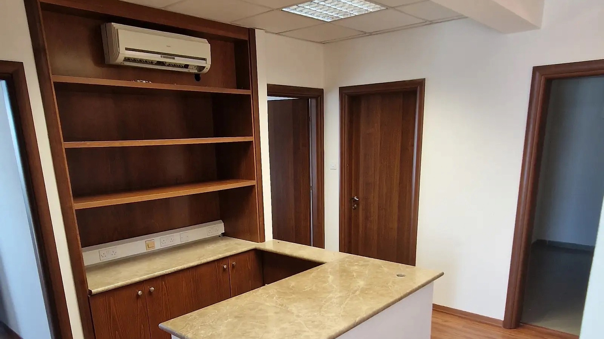 Сдаётся в аренду офисное помещение 160 м² в районе Strovolos, Nicosia. Офис включает 6 отдельных кабинетов, приемную, кухонный уголок, санузел и серверную, расположен на граунд этаже. Внутреннее пространство разделено перегородками (7 помещений вместе с reception). Помещение немеблировано, оснащено полноценной системой кондиционирования во всех комнатах, автономным отоплением, профессиональной телефонной системой, видеодомофоном, новой охранной сигнализацией и двойным остеклением. Предусмотрено 1 крытое парковочное место, а также общественная парковка за зданием возле школы. Объект находится в ухоженном двухэтажном здании, полностью реновированном в 2020 году, в востребованном районе с удобным доступом к общественному транспорту, множеству кафе, магазинов и близким выездом на трассу Nicosia–Limassol.