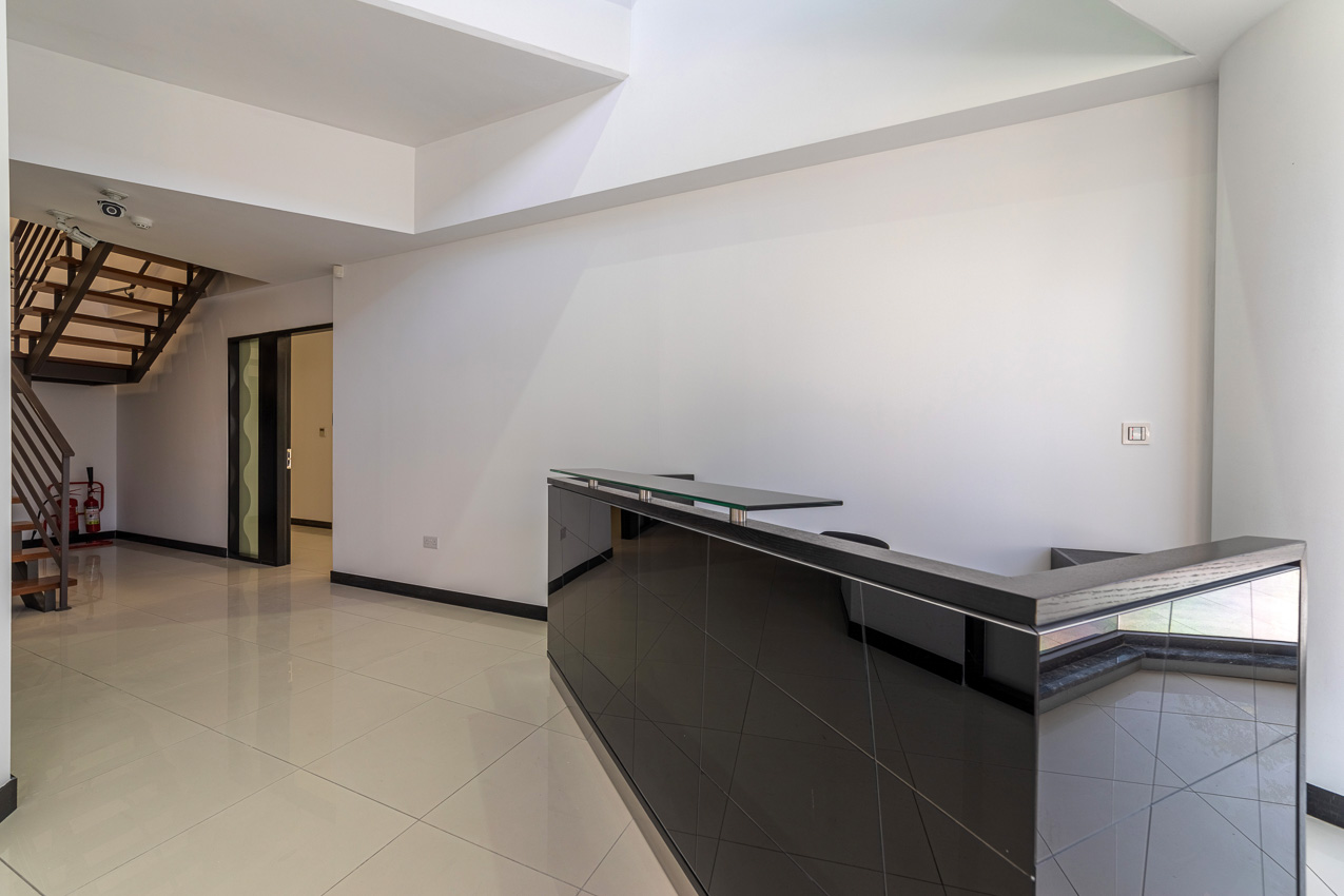 Сдаётся в аренду офис на первом этаже нового современного бизнес-центра в районе Меса Гейтония. Общая площадь офиса составляет 326 м², он расположен на первом этаже и имеет мезонин. Он состоит из 5 офисных помещений, кухни, туалетов и 4 парковочных мест. Первый этаж имеет крытую площадь 212 м² и состоит из зоны открытой планировки, которая служит входом и вестибюлем, офиса открытой планировки, конференц-зала, кладовой, копировальной комнаты, кухни и туалета. Мезонин имеет крытую площадь 114 м² и состоит из зоны открытой планировки, которая служит входом и вестибюлем, четырёх офисов, кухни и двух туалетов.