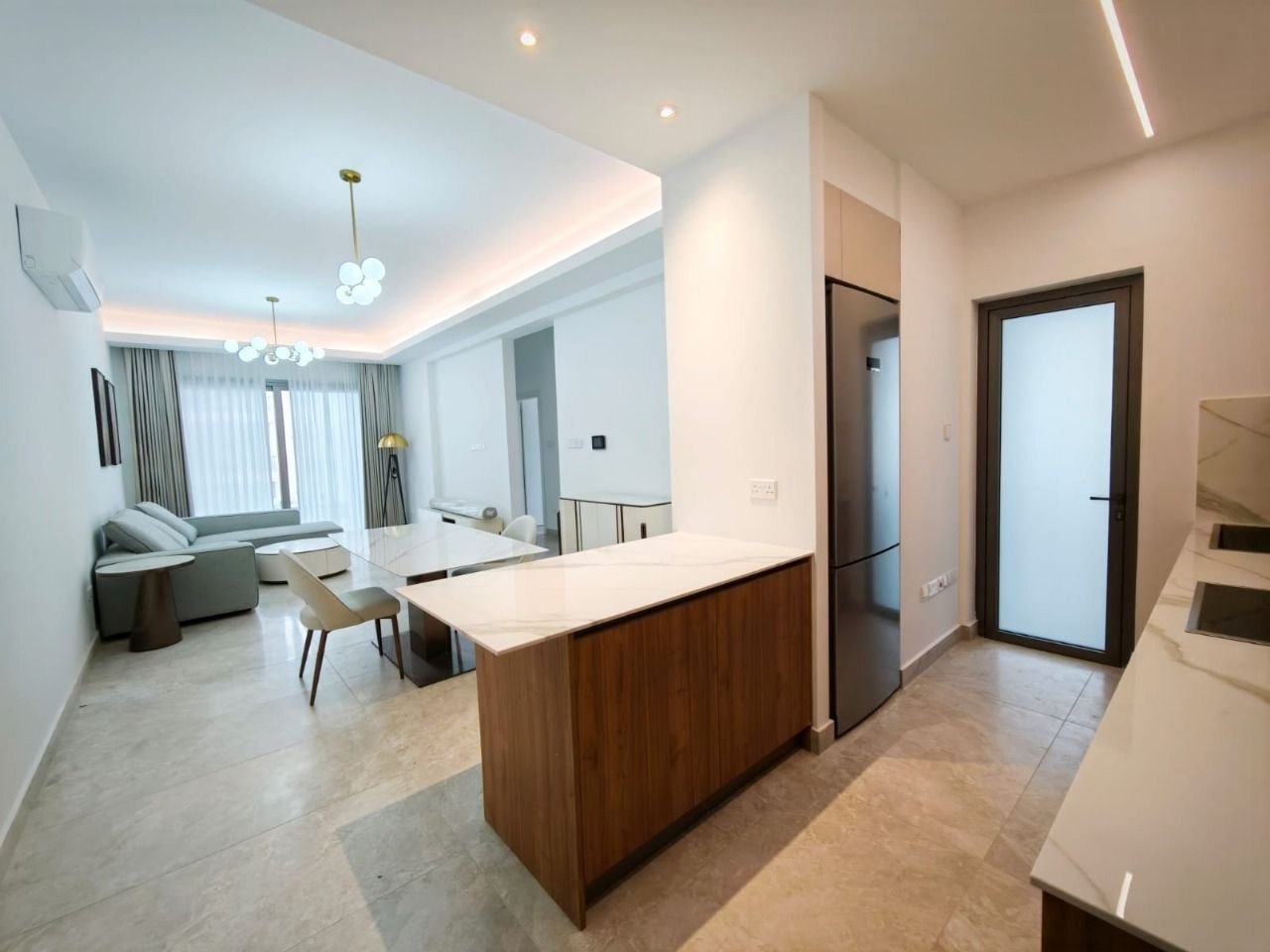Сдаётся трехспальная квартира площадью 138 м² включая веранды,в закрытом охраняемом комплексе с личным кладовым помещением .Квартира оснащена кондиционерами, тёплыми полами, солнечным водонагревом, системой умного освещения и видеодомофоном. В комплексе предусмотрены охрана, видеонаблюдение, роскошное лобби, охранная дверь, крытая парковка, частный склад, термальная изоляция по всему дому, открытый бассейн с переливом и благоустроенные сады.