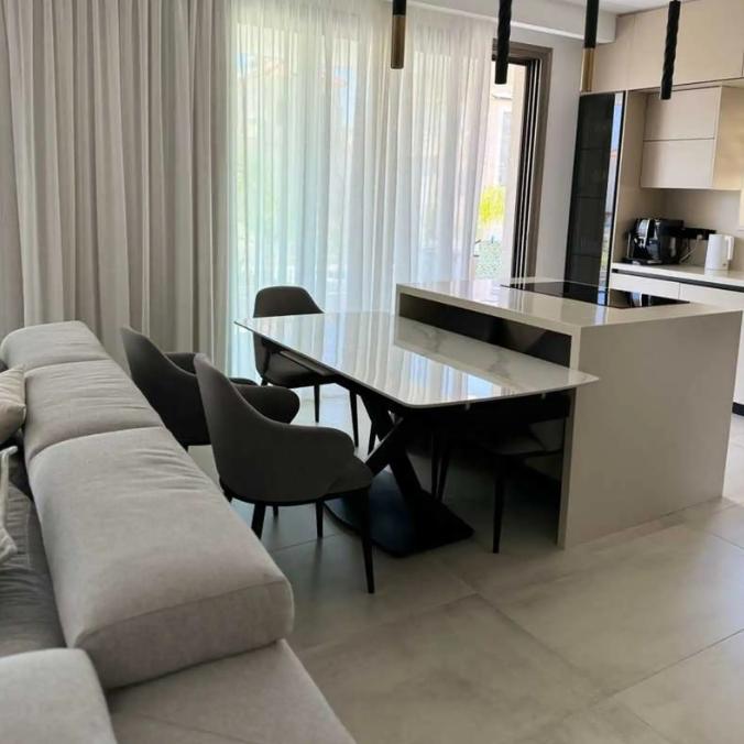 Сдаётся в районе Agios Athanasios Limassol трёхспальная квартира площадью 143 м², расположенная на первом этаже современного комплекса 2021 года постройки с энергоэффективностью класса A, полностью меблированная итальянской мебелью и оснащённая техникой Bosch. В квартире три спальные и две ванные комнаты, тёплый пол, кондиционирование во всех помещениях, камин, просторная гостиная с выходом на крытую веранду и зелёную зону общей площадью 35 м²; предусмотрены крытое парковочное место и кладовое помещение. Комплекс закрытого типа, расположен в тихой зоне и включает большой бассейн, детский бассейн, фитнес-центр, ухоженные сады и оборудованную барбекю-зону.