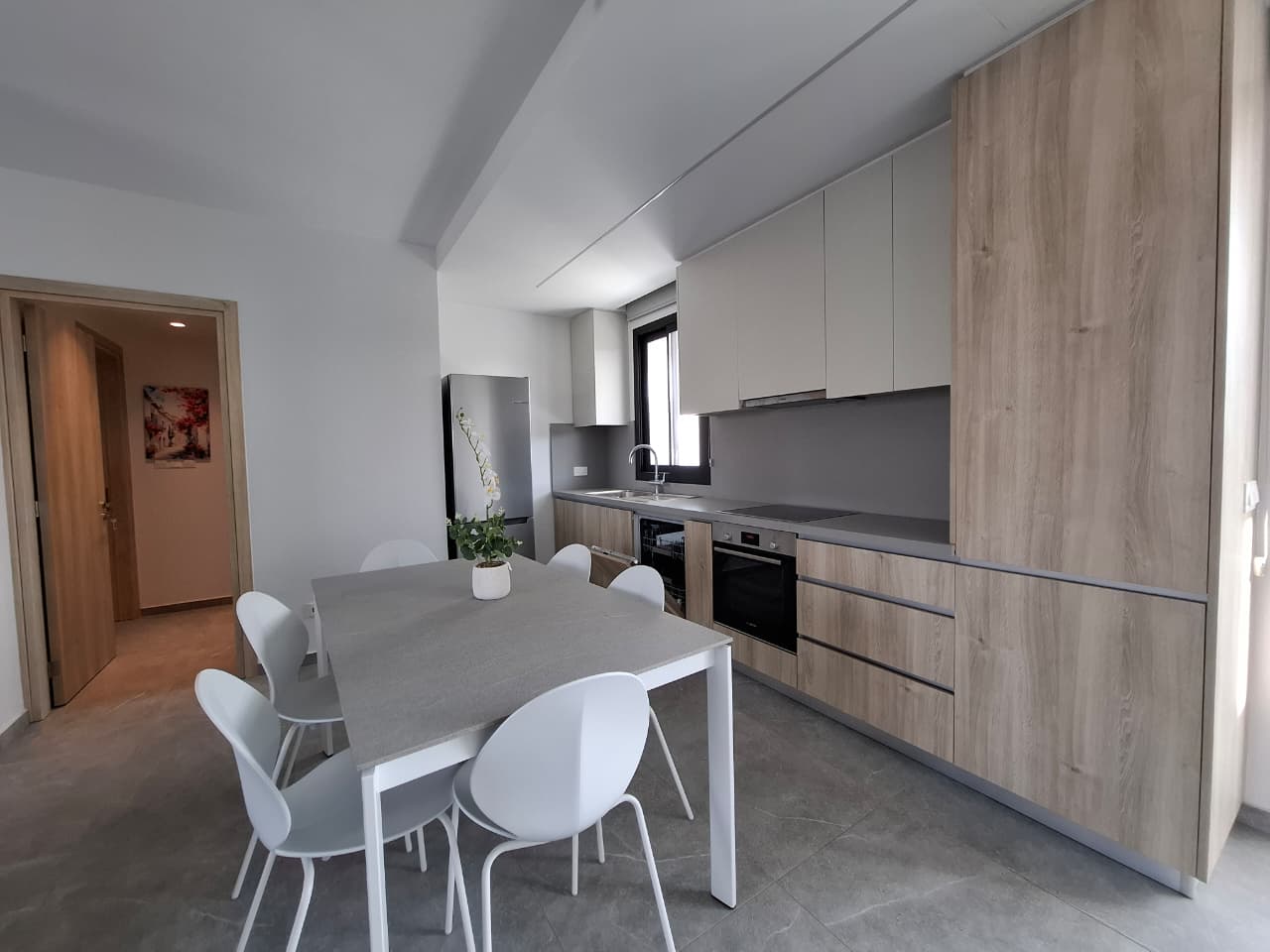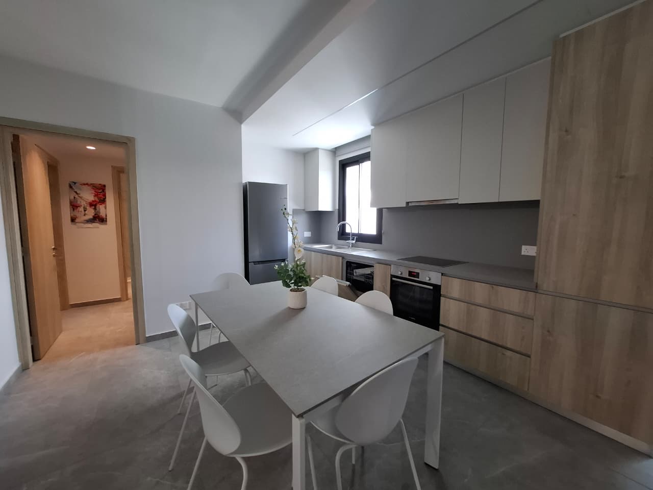 Сдаётся в районе Engomi, Makedonitissa, Nicosia, двуспальная квартира с внутренней площадью 85 м², полностью новая оформленная современной и качественной мебелью. Квартира расположена в тихой жилой зоне рядом с Mall of Nicosia и другими удобствами, отличается светлыми интерьерами, стильной отделкой и продуманной планировкой, включая главную спальню с собственной ванной комнатой и выходом на балкон. В квартире установлен тёплый пол с тепловым насосом, кондиционеры во всех помещениях, электрические жалюзи и фотогальваническая система 3.4 kW, обеспечивающая энергоэффективное проживание. Открытая кухня оснащена всей необходимой бытовой техникой, предусмотрены крытая парковка и кладовая, дом 2025 года постройки расположен в спокойном и ухоженном жилом районе.