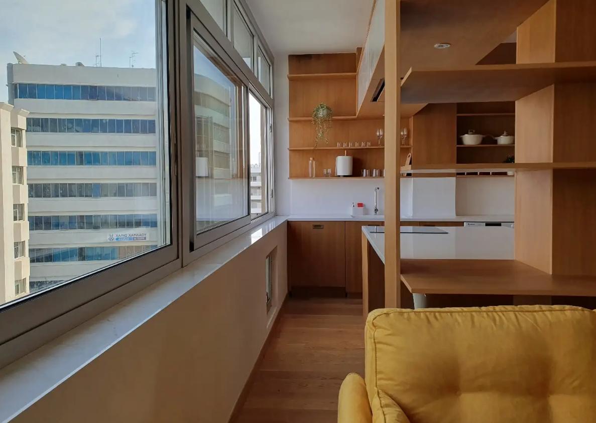 Сдаётся односпальный пентхаус в районе Trypiotis в городе Nicosia, полностью обновлённый объект площадью 70 м² на пятом этаже в самом центре города на Makariou Avenue. Пентхаус отличается светлым пространством с большими окнами и панорамными видами, включает одну спальную, открытую гостиную с обеденной зоной и большую полностью оборудованную кухню с новой техникой. Планировка была переделана из двухспальной в одну просторную, что обеспечивает больше комфорта. Внутри установлены новые мебель и бытовые приборы, выполнены качественные отделочные работы с паркетом и встроенными кондиционерами во всех помещениях. В здании есть лифт. Этот пентхаус отлично подходит для тех, кто хочет жить в шаговой доступности от всех удобств в центре города.