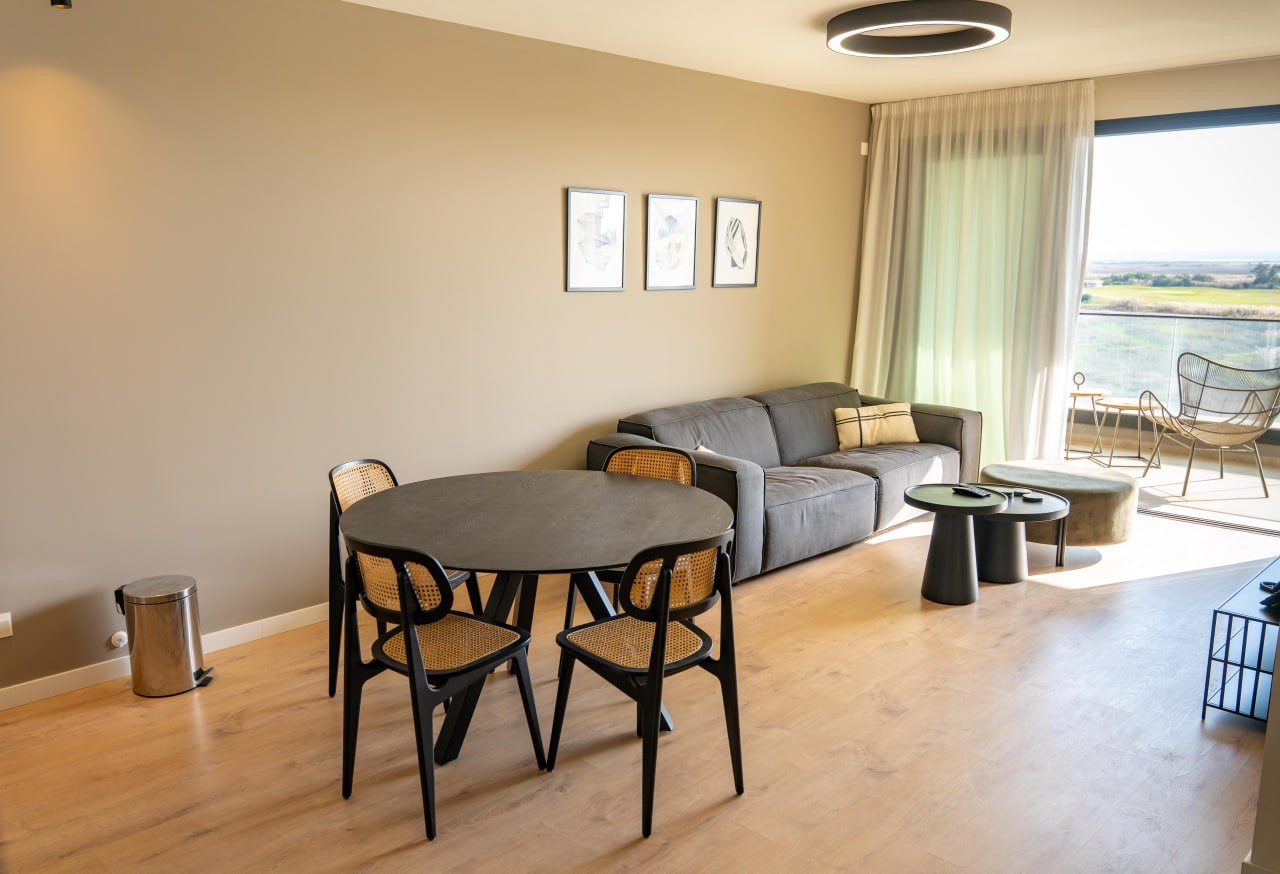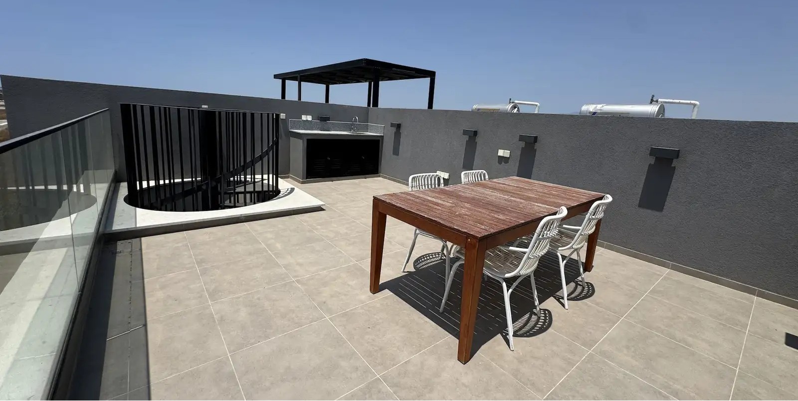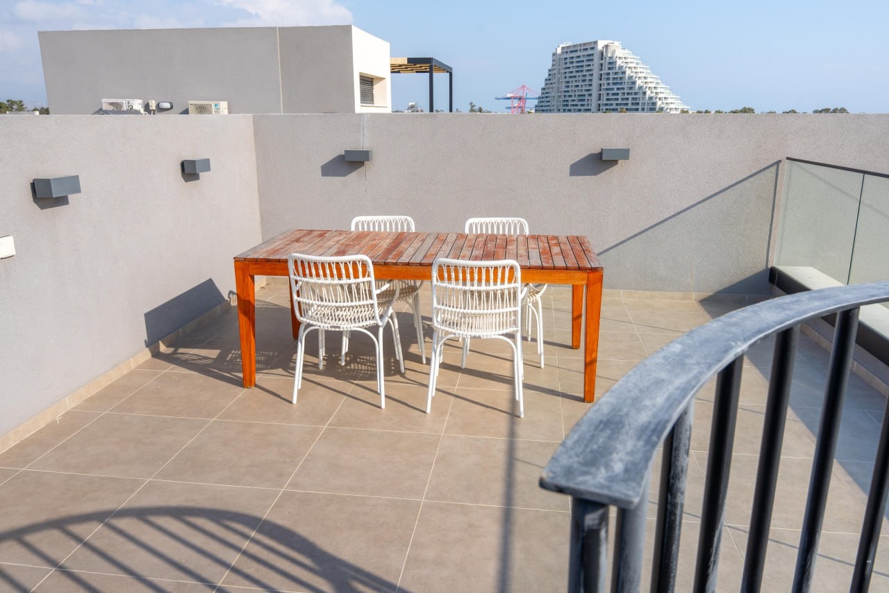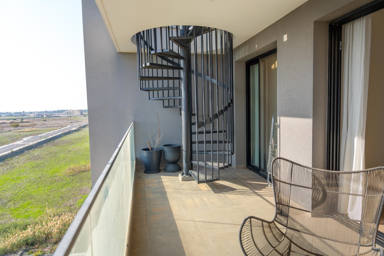 Сдаётся в аренду однокомнатный пентхаус площадью 52 м² в районе Limassol, Zakaki. Пентхаус включает одну спальню, одну ванную комнату, кухню, гостиную, крытую веранду 16 м², а также частный сад на крыше площадью 33 м² с перголой, кладовую и одно парковочное место. Квартира расположена на 2-м этаже. Недвижимость полностью меблирована и оснащена премиальным интерьерным пакетом Oblique, в который входит дизайнерская мебель, постельное бельё, столовая утварь и полный комплект бытовой техники: холодильник, посудомоечная машина, стиральная машина, духовой шкаф, варочная панель, вытяжка и система кондиционирования во всех помещениях. Резиденция расположена в современном комплексе с широким спектром удобств: трёх общих бассейнов, тренажёрного зала с оборудованием TechnoGym, площадок для тенниса и баскетбола, современного коворкинга, спа-центра и велнес-зоны, оборудованных BBQ-зоной и пикниковыми площадками, а также благоустроенных дорожек для прогулок и велопрогулок. Комплекс расположен в западной части Лимассола, рядом с будущим гольф-курортом Limassol Greens, с удобным доступом к автомагистрали, My Mall и пляжу Lady’s Mile.