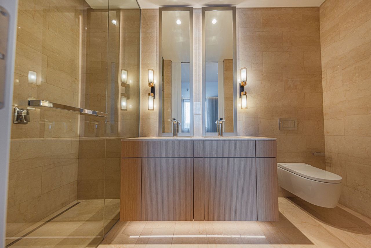 - Мрамор Botticino Classico на полу и стенах, противоскользящее покрытие во влажных помещениях
