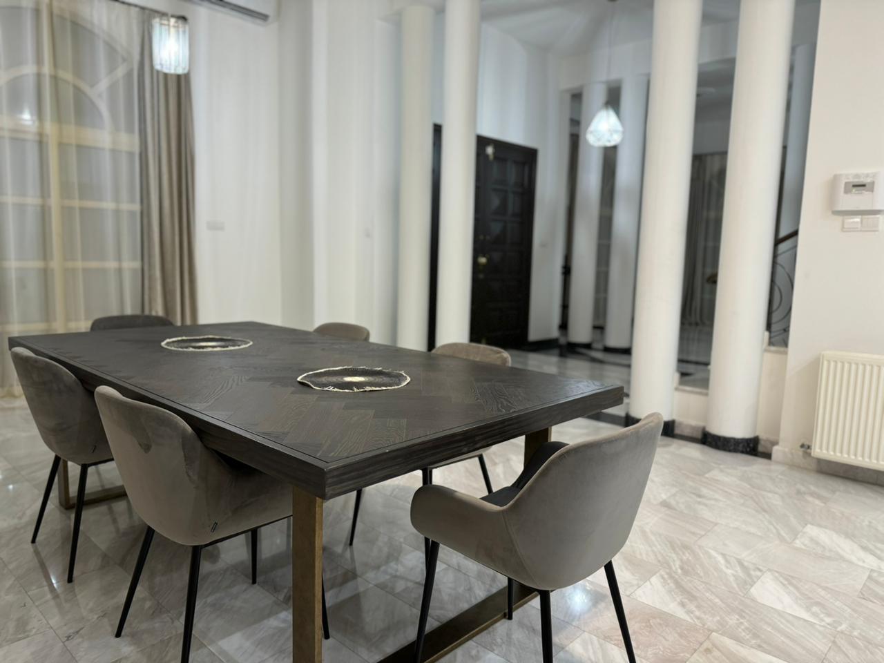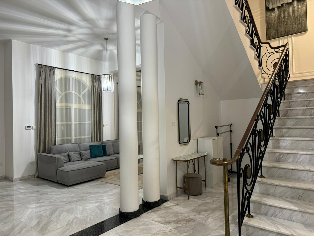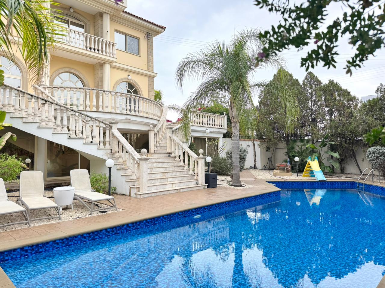 Сдаётся пятиспальная вилла в районе Mouttagiaka, город Limassol площадью 250 м² на участке 750 м² с видом на море, полностью меблированная и оснащённая всей техникой. Вилла включает четыре спальные, комнату для прислуги и кабинет, пять ванных комнат, чердак, игровую комнату, тренажёрный зал и кладовую. Есть частный бассейн, сад с зоной барбекю, крытая парковка, центральное отопление, кондиционеры во всех комнатах, система видеонаблюдения и сигнализация. Расположена в пяти минутах езды от супермаркета METRO в спокойном и удобном районе.