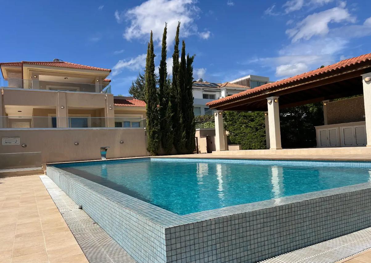 Сдаётся семиспальная вилла в районе Germasogeia, город Limassol, общей площадью 550 м², расположенная на участке 1400 м² и полностью меблированная. Вилла 2015 года постройки с высоким классом энергоэффективности A предлагает просторную планировку с семью спальнями и восемью ванными комнатами, тёплыми полами и кондиционированием во всех помещениях. В доме есть камин, игровые и хозяйственные помещения, балконы и кладовые. На территории расположен большой бассейн, ухоженный сад и крытая парковка. Объект находится в одном из лучших районов Limassol и отличается полным панорамным видом на море.