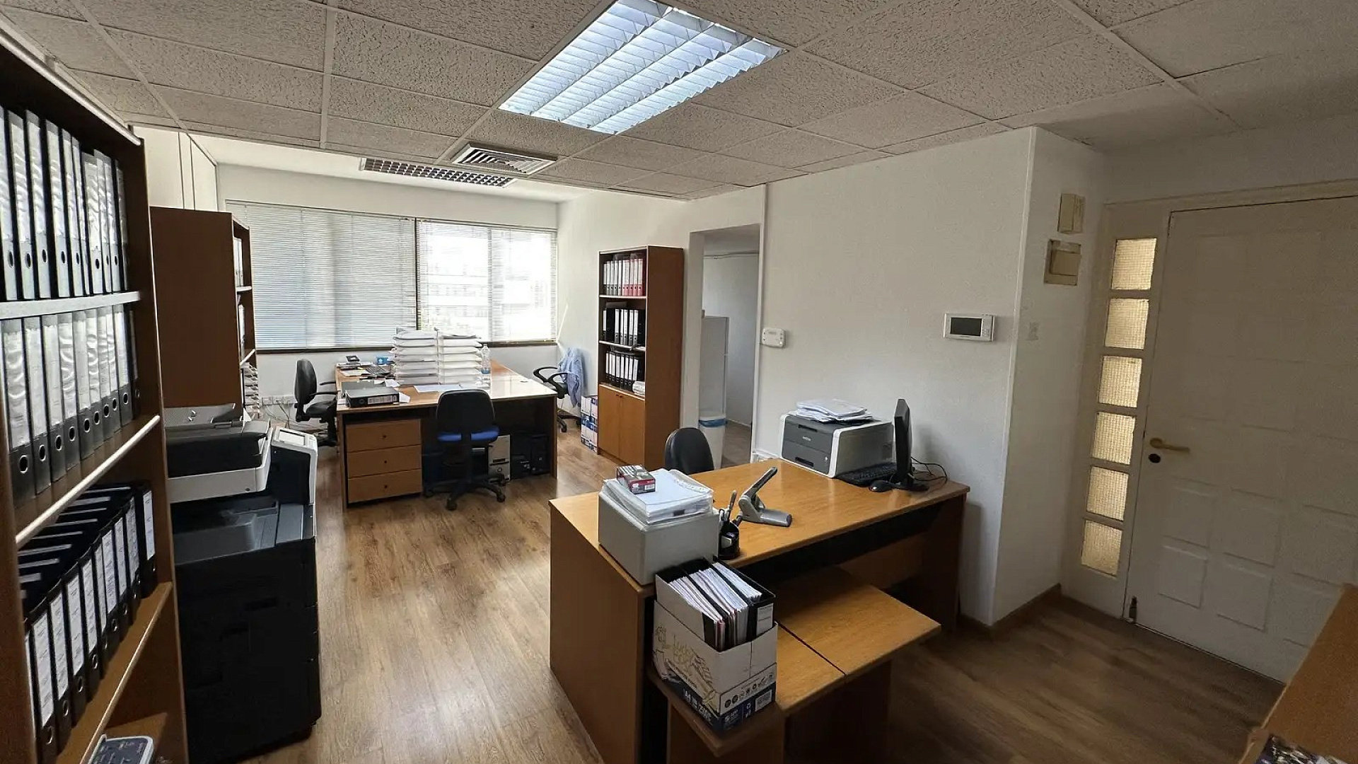 Сдается в аренду офисное помещение площадью 111 м² в центре Никосии, район Agios Antonios, Nicosia. Офис включает мебель, два офисных кабинета, стеклянную переговорную или кабинет, серверную с кондиционированием, кухню и санузел. Помещение полностью оборудовано системой кондиционирования и находится в очень хорошем состоянии. В здании есть лифт, система сигнализации и парковка.