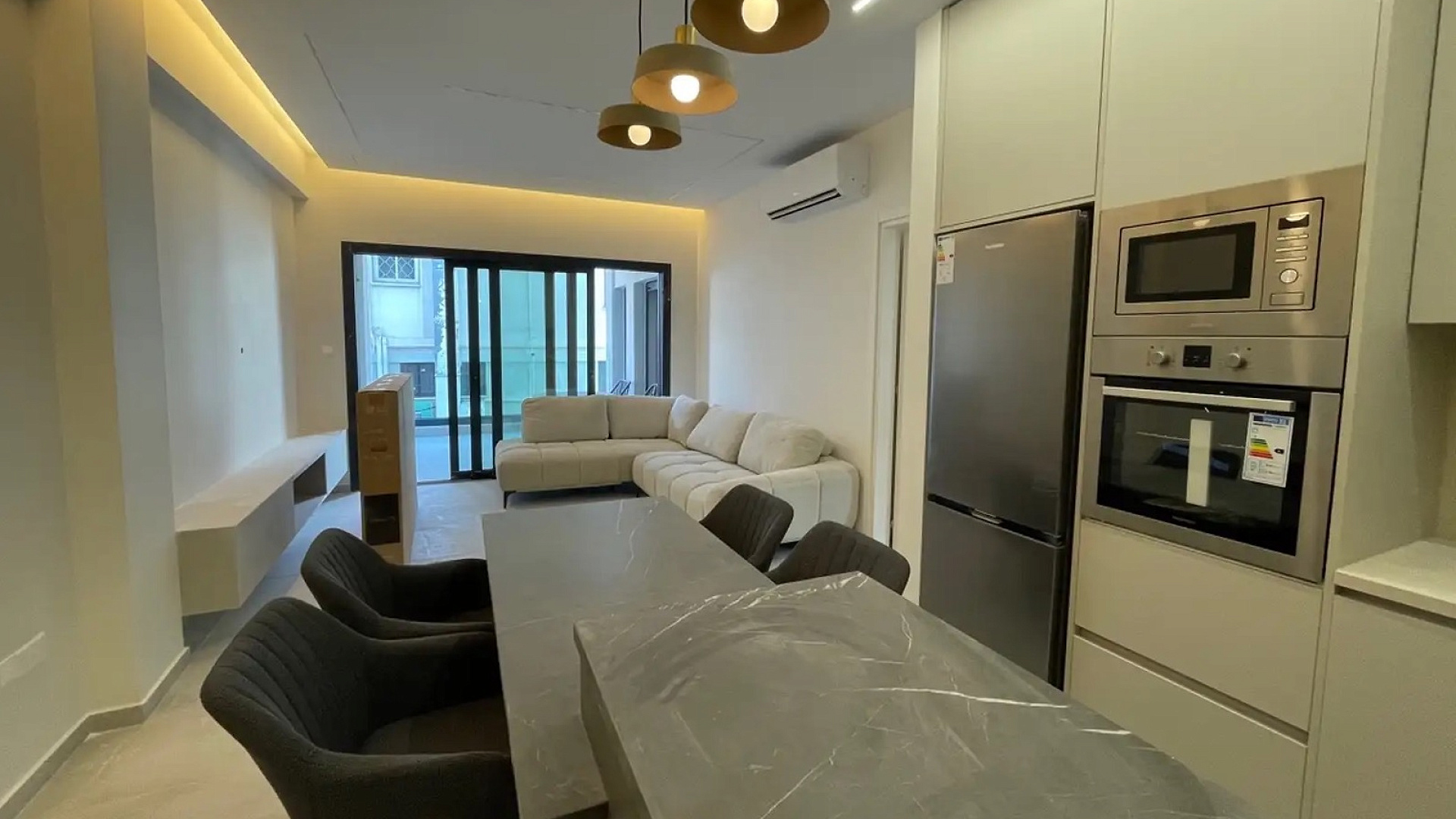 Сдается в аренду двухспальная квартира крытой площадью 83 м² в районе Polemidia, Limassol. Апартаменты включают две просторные спальни, две современные ванные комнаты, одна из которых en-suite, открытую зону гостиной с кухней. Недвижимость полностью меблирована и оснащена всей бытовой техникой, включая систему кондиционирования воздуха во всех помещениях, холодильник, духовой шкаф, варочную панель, стиральную машину и другое оборудование. Апартаменты находятся в новом жилом доме 2025 года постройки с классом энергоэффективности A, отличаются светлым интерьером, современным дизайном и высококачественной отделкой. Квартира расположена в центральной части города на Apostolou Varnava, в пешей доступности от магазинов, кафе и супермаркетов, при этом парковка находится в непосредственной близости от здания.