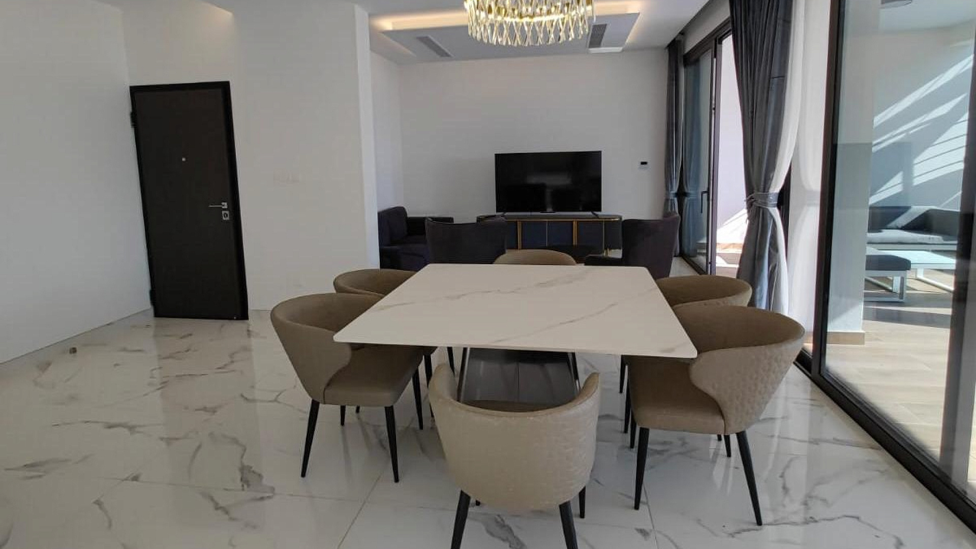 Сдаются в аренду апартаменты с 4 спальнями в районе Germasogeia Columbia, Limassol. Квартира полностью меблирована и оборудована бытовой техникой. Есть веранда 35 м2, кладовая 25 м2, открытая терраса на крыше 105 м. Установлена система VRV-система кондиционирования воздуха, пол с подогревом. В комплексе есть открытый бассейн, детский бассейн, тренажерный зал (только для жильцов), зона для барбекю, детские игровые площадки, полностью благоустроенные садовые зоны, частная охраняемая парковка на 2 автомобиля.