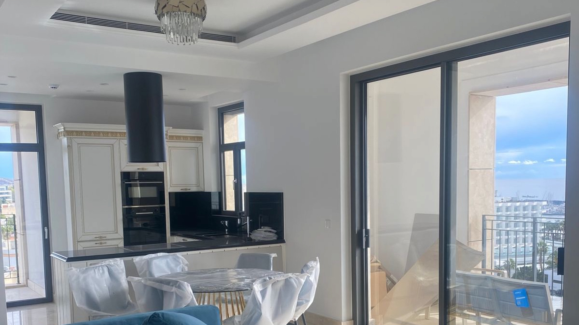 Сдаётся в аренду двухспальная квартира 162 м2 в районе Agios Tychonas, Limassol. Апартаменты включают две спальни, гостиную, кухню, ванные комнаты и просторные веранды. Внутренняя жилая площадь составляет 92 м², крытые веранды — 38 м², площадь общих зон — 31 м². Из жилых помещений открывается панорамный вид на море. Квартира расположена на 8-м этаже жилого комплекса. Квартира полностью меблирована и готова к заселению.