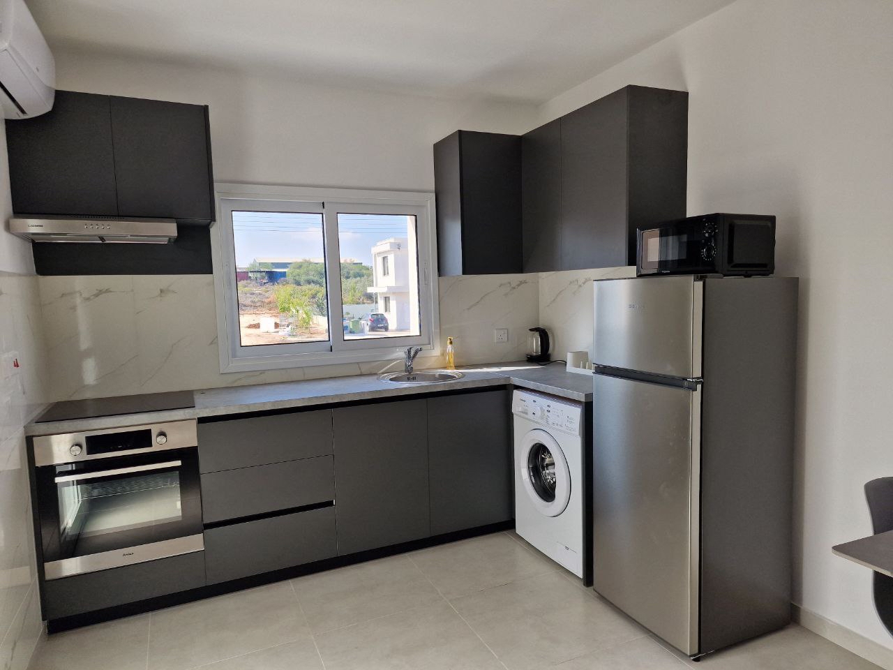 Сдаётся в аренду однoспальная квартира площадью 55 м² в районе Paralimni, Famagusta. Квартира расположена на 1-м этаже. Квартира включает 1 спальню, 1 ванную комнату, кухню, гостиную, балкон площадью 5 м² и roof garden. Недвижимость полностью меблирована и оснащена бытовой техникой, в объявлении также указаны интернет и система видеонаблюдения CCTV. В стоимость аренды включены communal fees и интернет, предусмотрено крытое парковочное место.