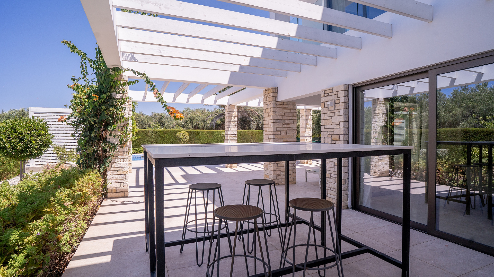 Сдается в аренду стильный дом с 4 спальнями, расположенный в живописном и спокойном районе Pegeia, Pafos. Дом выполнен в современном стиле, в нем просторная гостиная и полностью оборудованная кухня. На участке расположен частный бассейн с зоной отдыха и удобным местом для барбекю. Для комфорта жильцов в доме установлена система кондиционирования и система отопления, есть кладовая и парковка. Дом находится в закрытом комплексе, всего в 550 метрах от моря, а рядом расположены магазины, рестораны и другие объекты инфраструктуры.