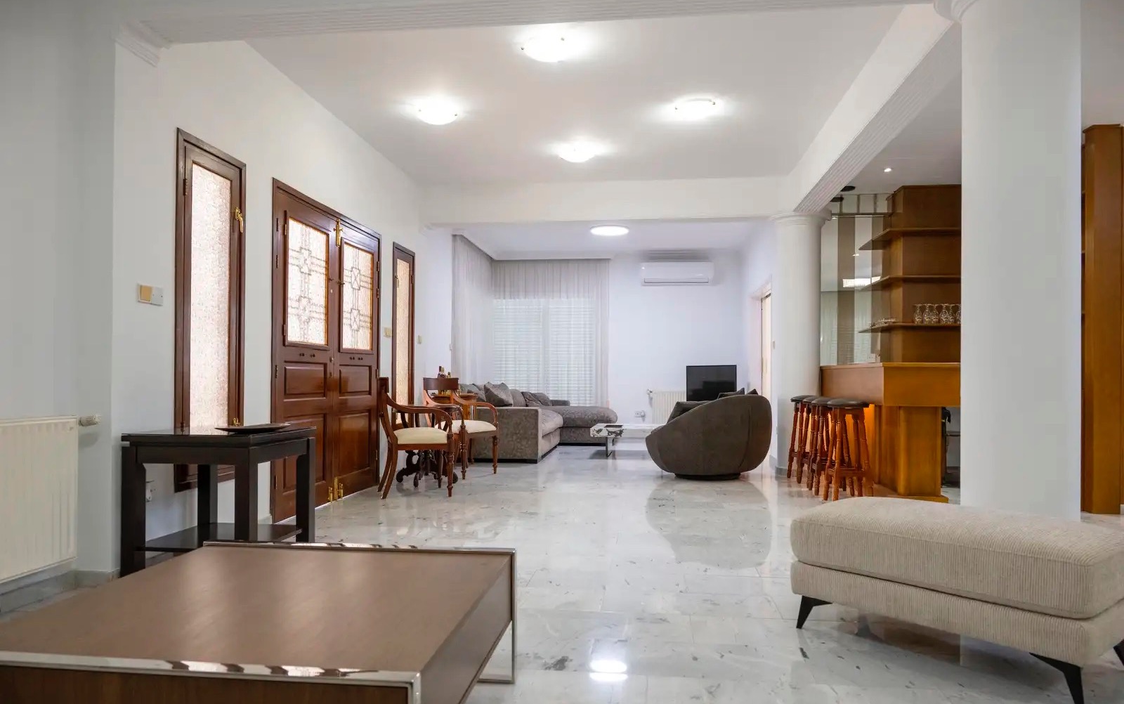 Сдаётся в аренду четырёхспальный дом площадью 558 м² в районе Agios Athanasios, Limassol. Дом включает 4 спальни, из которых 3 спальни расположены на первом этаже, включая мастер-спальню с ванной комнатой, 3 ванные комнаты, а также дополнительную спальню в отдельном внешнем подвальном помещении для персонала, кухню, гостиную, балконы, просторные веранды, кладовую и сад. Резиденция полностью меблирована и оборудована системой кондиционирования во всех помещениях, центральным отоплением, фотоэлектрическими панелями, предусмотрена частная открытая парковка на 2 автомобиля.