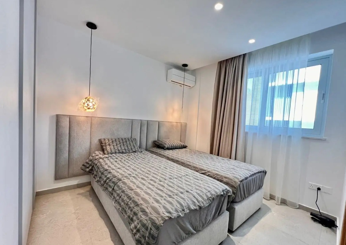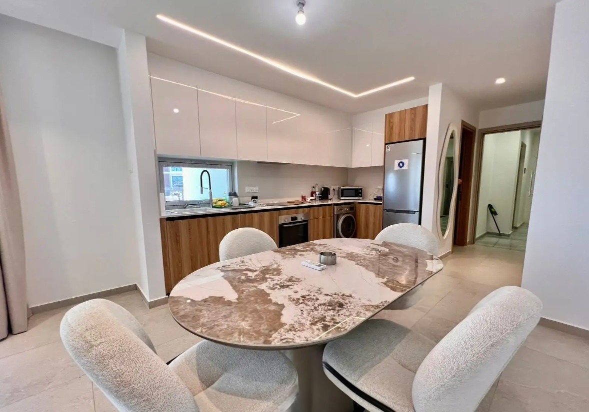 Сдаётся двухспальная квартира в районе Makenzy, Larnaca, расположенная на 1 этаже, общей площадью 79 м², полностью меблированная и готовая к проживанию. Квартира находится в пешей доступности от пляжа Makenzy, кафе, ресторанов и баров, всего в нескольких минутах от центра города и с удобным выездом к аэропорту и автомагистралям. Планировка включает открытую кухню, объединённую с гостиной и обеденной зоной, две спальни с собственными душевыми, а также гостевой санузел. В квартире установлены кондиционеры во всех комнатах, предусмотрены крытая и открытая веранда, кладовая, лифт в здании и крытая парковка.