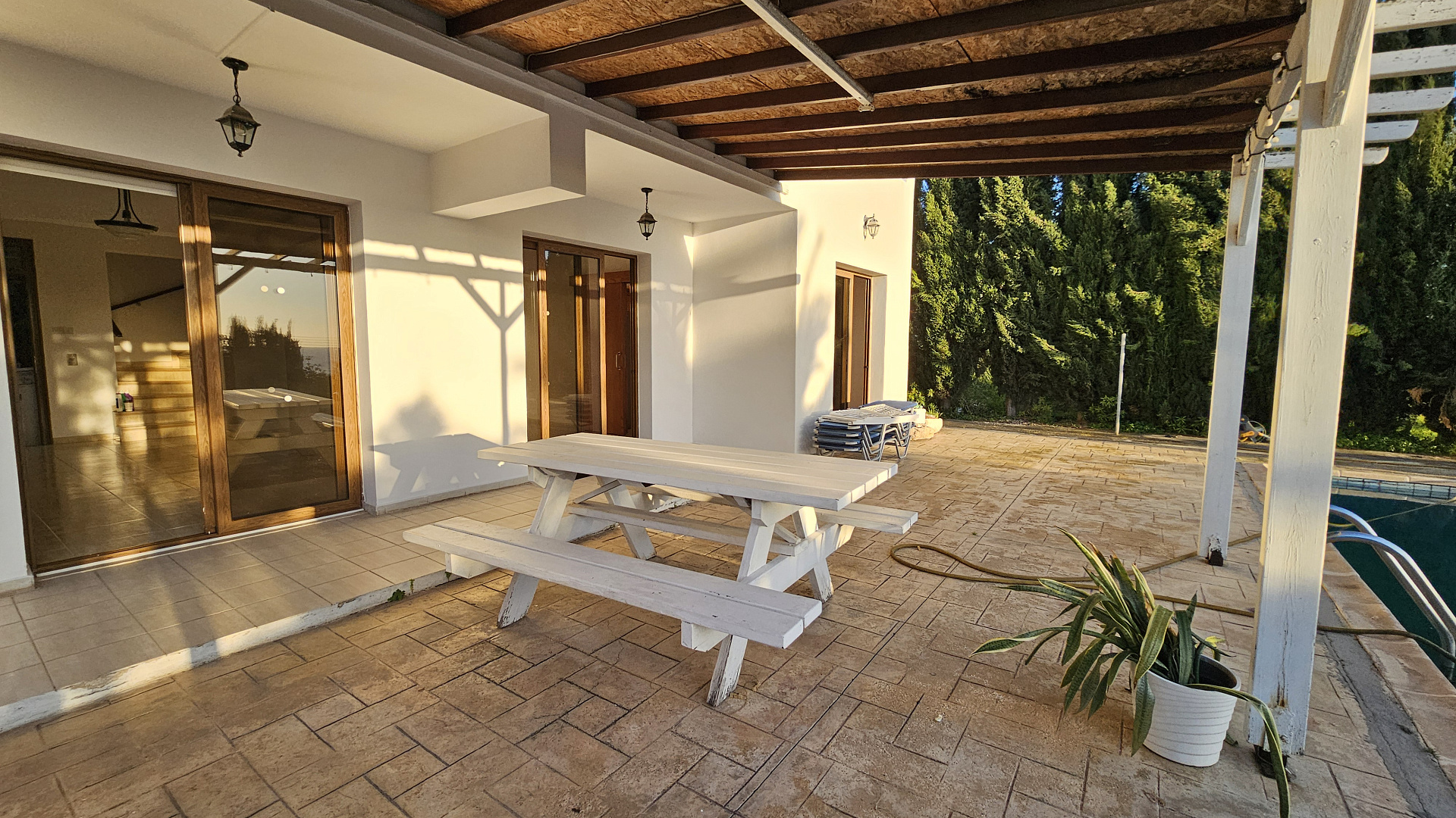 Сдаётся в аренду четырёхспальная вилла площадью 175 м² на участке 500 м² в районе Kissonerga, Paphos. Вилла включает 4 спальни, 3 ванные комнаты с душевыми и 3 WC, кухню, гостиную, балконы, кладовую, а также частный бассейн и сад. Резиденция не меблирована, оборудована кондиционерами во всех комнатах и системой photovoltaic, предусмотрена крытая парковка. Недвижимость расположена на холме в деревне Kissonerga, на полпути между Paphos и Coral Bay, напротив отеля Golden Atlantica Hotel, с приятным видом на море, примерно в 500 м от главной набережной дороги и рядом с необходимой инфраструктурой. Дом построен в 2015 году, допускается проживание с домашними животными.