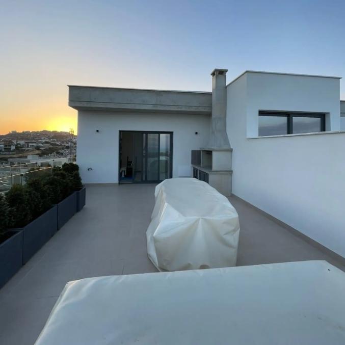 Сдаётся четырёхспальный пентхаус с roof garden в районе Germasogeia, Limassol, общей площадью 184 м². Пентхаус включает три спальни, две из которых с собственными ванными комнатами, а на верхнем этаже расположена отдельная студия с ванной комнатой. На крыше устроена зона для барбекю с кладовым помещением. Квартира оснащена высокими потолками со скрытой подсветкой, электрическими жалюзи в спальнях, системой подогрева полов, VRV-кондиционированием во всех помещениях, системой сигнализации, видеонаблюдения и видеодомофоном. Предусмотрены TV и интернет во всех комнатах, встроенная бытовая техника, гранитные кухонные столешницы с островом, настенные шкафы для ТВ и хранения, шторы и жалюзи, система фильтрации и давления воды, собственная фотоэлектрическая система. В стоимость включены два крытых парковочных места рядом друг с другом и кладовое помещение. В здании всего шесть квартир.